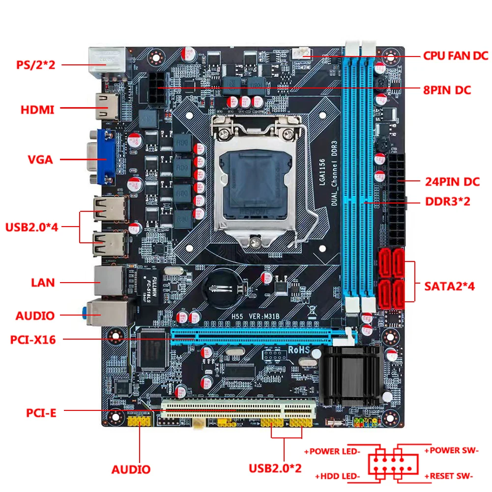 Процессор: i5-760 CPU, а материнская плата поддерживает Intel i3/i5/i7 и процессоры серии Celeron G 1156-pin.