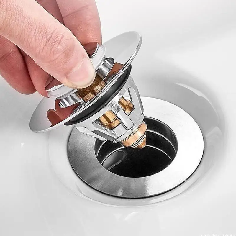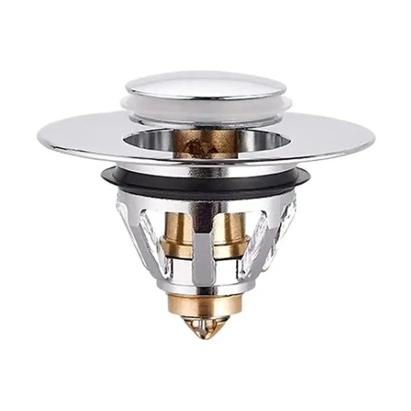 BUILT-IN STRAINER Unlike regular push-button drain, this drain stopper has an anti-clogging basket strainer inside that neatly collects hair and prevents the drain from clogging up, stuff that won't get into the drain, such as jewelry, ring, dirt, and so on.
