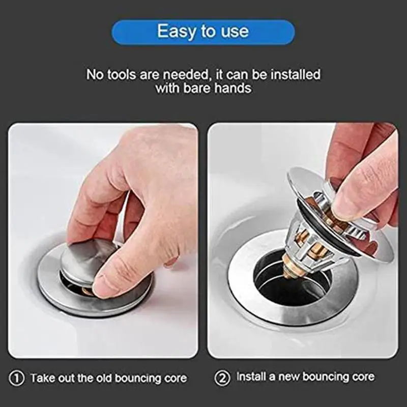 Anyone can install the pop-up drain because of its simple structure, no tools required, just replace the old one and insert the bounce core to complete it.