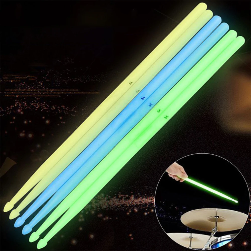 5А 1 пара светящиеся барабанные палки барабанный набор Джаз флуоресцентные барабанные палочки Glo