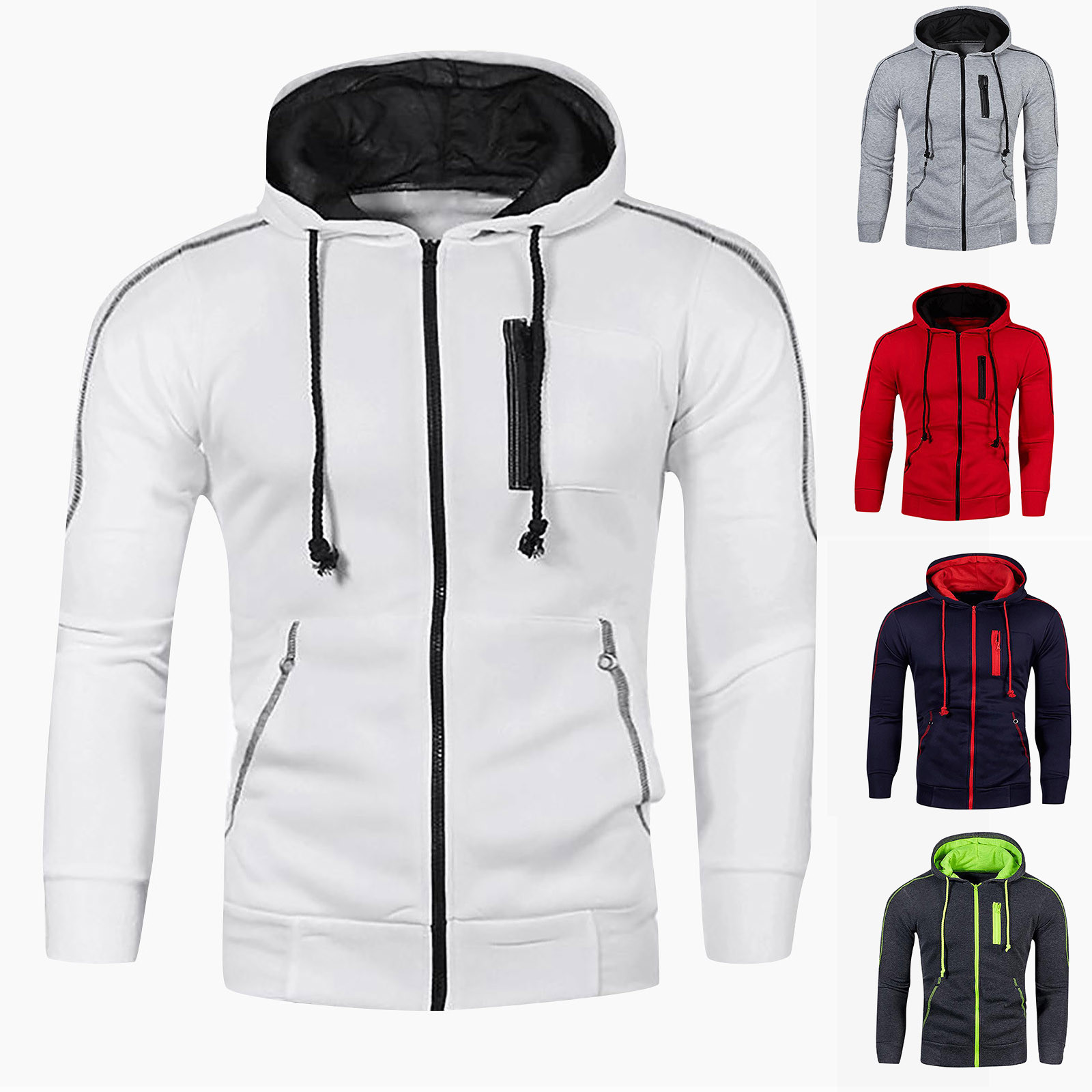 Весна и осень Новый мужской однотонный кардиган с капюшоном флисовое повседневное пальто