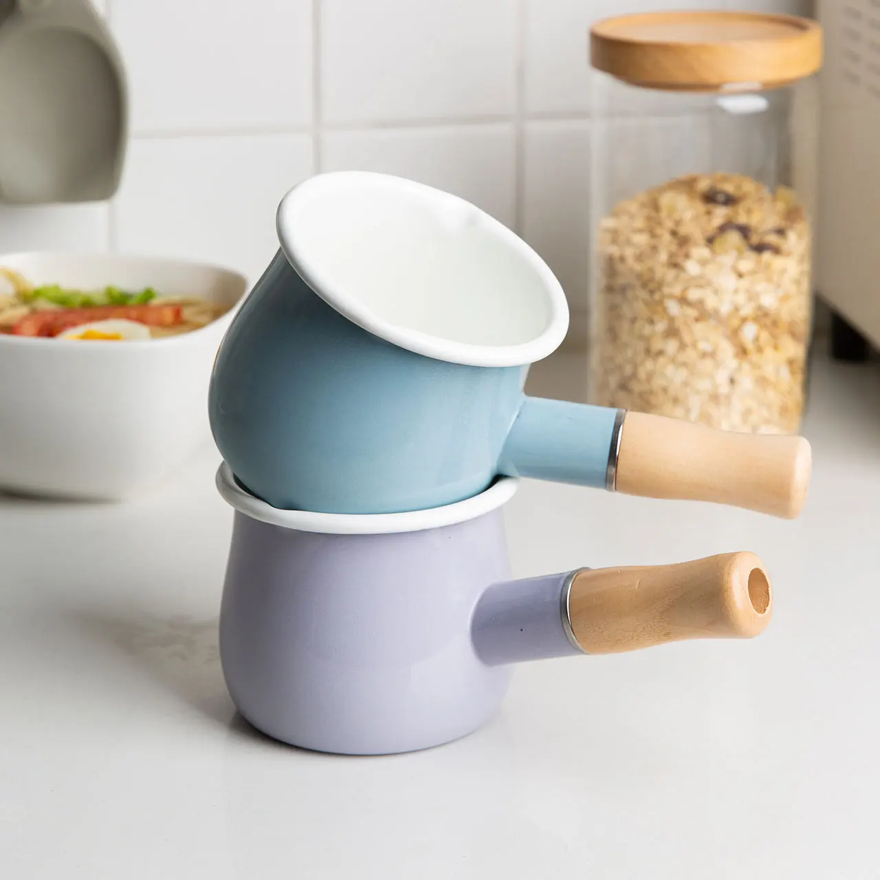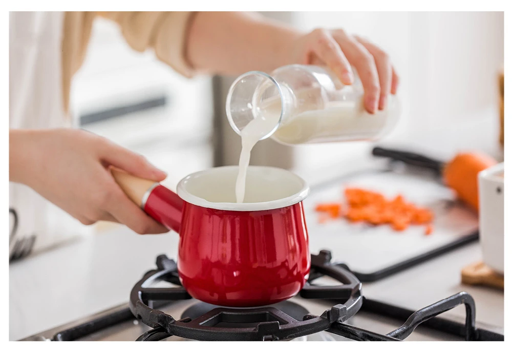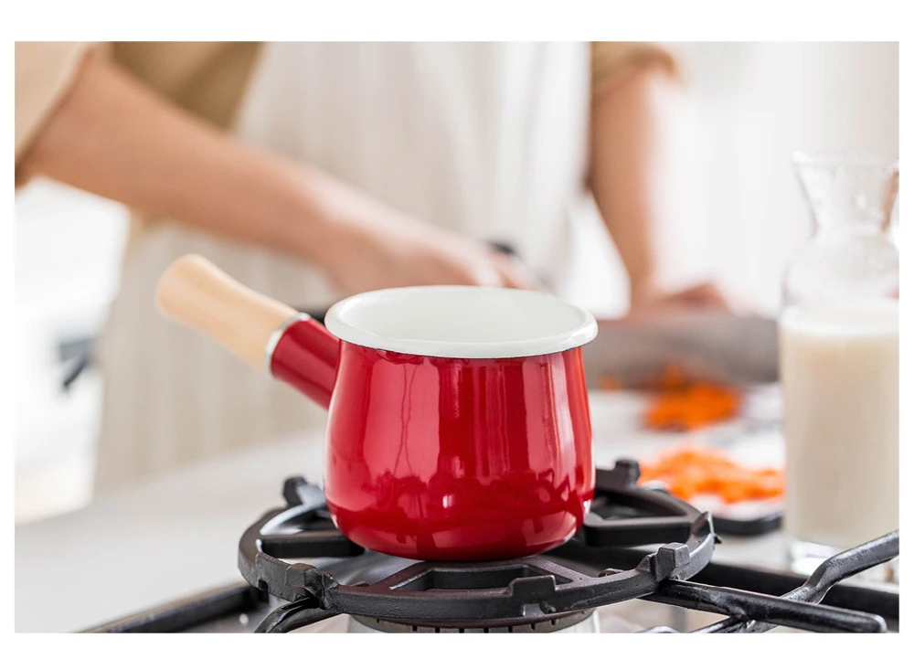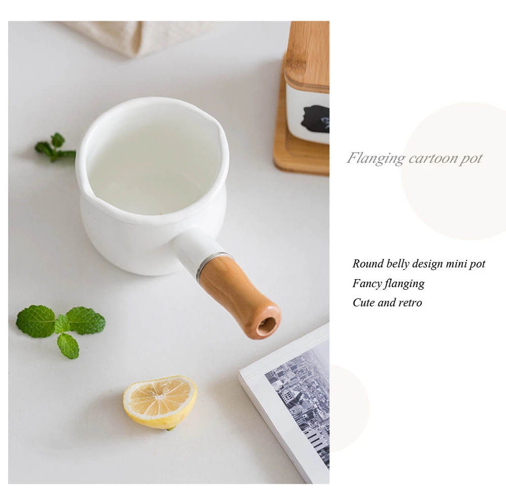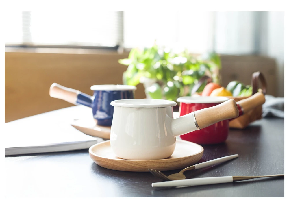 Японский стиль 500 мл молочный горшок с деревянной ручкой эмалированный кофейный горшок с маслом