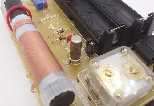 The red coil on the magnetic rod is the regeneration coilL3,Players need to use plastic thin wires according to the actual effect1~2circle。 The jumper is used to test the working current of the high-voltage discharge tube,Plug in the jumper cap after measurement,Very convenient。 10μElectrolytic capacitors and3.9kThe resistor is not installed,This is636Basic circuit of single tube machine,They can improve performance。 There are two elements,Silicon tube can be assembled conveniently636Single tube machine,Just put all the components with positive and negative polarity(Including electricity pool)The polarity of can be changed。 This kit is designed with on-board micro potentiometer series protection resistor(27k/220k)To adjust the bias flow of high-pressure discharge pipe,Easy to operate 。The bias resistance required for regeneration is large,Can be27kReplace protective resistor with220kresistance。