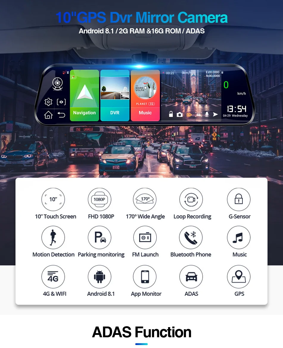 Передняя линза может быть вытянута/вставлена для гибкой регулировки угла обзора, качество 6 линз обеспечивает недеформирующиеся изображения, а также широкий угол обзора 170 °, фиксирует изображение дороги в высоком разрешении 1080P.