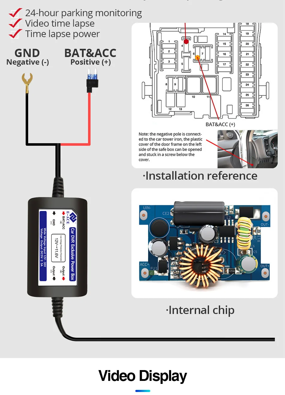 Видеорегистратор совместим только с автомобилями с источником питания 12 В. Источник питания 24 В сожжет материнскую плату. Если вы хотите использовать 24V, поэтому, пожалуйста, добавляйте еще один 24 В до 12 В конвертер (BL).