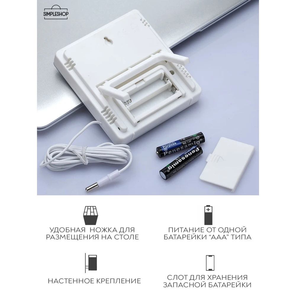 Погодная метеостанция SimpleShop, с двумя термометрами и гигрометром, возможностью измерения влажности воздуха, выносным датчиком и электронными часами с функцией будильника