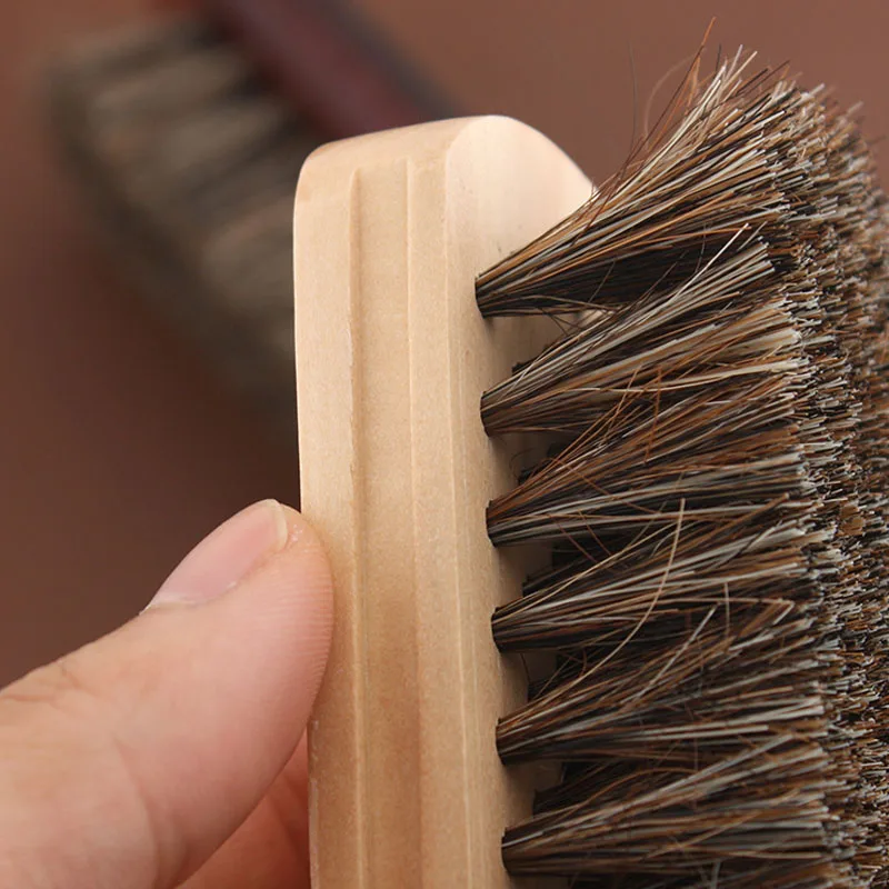Кожаные запасы обуви, щетка для полировки, портативная щетка для обуви, деревянная ручка, инструмент для чистки дома, 1 шт., щётки из конского волоса