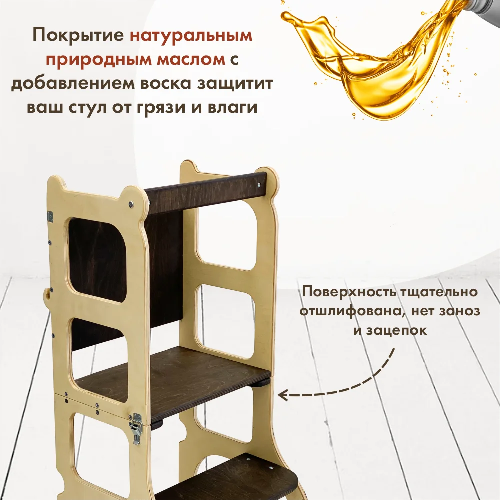 A universal assistant in your house is the tower of a small assistant for the baby.The tower is designed according to the method of education of Maria Montessori for children from 1 year to 4 years.