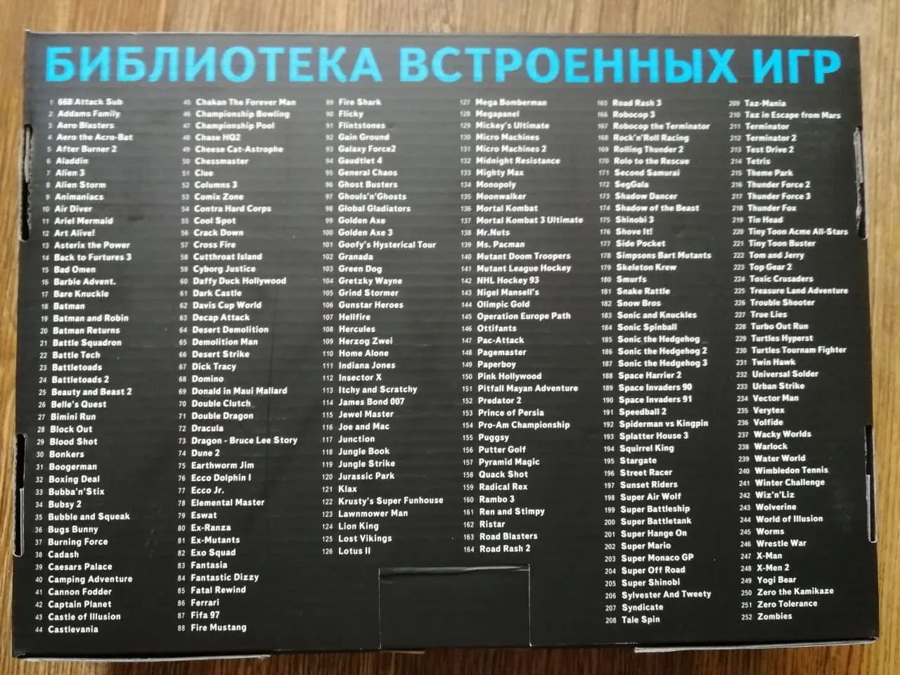 668 Attack Sub, Addams Family, Aero Blasters, Aero the Acro-Bat, After Burner 2, Aladdin, Alien 3, Alien Storm, Animaniacs , Air Diver, Ariel Mermaid, Art Alive!, Asterix the Power, Back to Furtures 3, Bad Omen, Barbie Advent., Bare Knuckle, Batman, Batman & Robin, Batman Returns, Battle Squadron, Battle Tech, Battletoads, Battletoads 2, Beauty and Beast 2, Belle"s Quest, Bimini Run, Block out, Blood shot, Bonkers, Boogerman and fick adve, Boxing Deal, Bubba n Stix, Bubsy 2, Bubble and Squeak, Bugs Bunny, Burning Force, Cadash, Caesars Palace, Camping Adventure, Cannon Fodder, Captain Planet, Castle of Illusion, Castlevania, Chakan The Forever Man, Championship Bowling, Championship Pool, Chase HQ2, Cheese Cat-Astrophe, Chessmaster, Clue, Columns 3, Comix Zone, Contra Hard Corps, Cool Spot, Crack Down, Cross Fire, Cutthroat Island, Cyborg Justice, Daffy Duck Hollyw., Dark Castle, Davis Cup World, Decap Attack, Desert Demolition, Demolition Man, Desert Strike, Dick Tracy, Domino, Donald in Maui Mallard, Double Clutch, Double Dragon, Dracula, Dragon - The Bruce Lee Story, Dune 2, Earthworm Jim, Ecco Jr., ecco, Elemental Master, Eswat, Ex-Ranza, Ex-Mutants, Exo Squad, Fantasia, Fantastic Dizzy, Fatal Rewind, Ferrari, Fifa 97, Fire Mustang, Fire Shark, Flicky, Flintstones, Gain Ground, Galaxy Force2, Gaudtlet 4, General Chaos, Ghost Busters, Ghouls'N Ghosts, Global Gladiators, Golden Axe, Golden Axe 3, Goofy's Hysterical Tour, Granada, Green Dog, Gretzky Wayne 1997, Grind Stormer, Gunstar Heroes, Hellfire, Hercules, Herzog Zwei, Home Alone, Indiana Jones, Insector X, Itchy and Scratchy, James Bond 007, Jewel Master, Joe and Mac, Junction, Jungle Book, Jungle Strike, Jurassic Park, Klax, Krusty's Super Funhouse, Lawnmower Man, THE Lion King, Lost Vikings, Lotus II, Mega Bomberman, Megapanel, Mickey"s Ult. Chal., Micro Machines, Micro Machines 2, Midnight Resistance, Mighty Max, Monopoly, Moonwalker, Mortal Kombat, Mortal Kombat 3 Ultimate, Mr.Nuts, Ms. Pacman, Mutant Doom Troopers, Mutant League Hockey, NHL Hockey 93, Nigel Mansell"s, Olimpic Gold, Operation Europe Path, Ottifants, Pac-Attack, Pagemaster, Paperboy, Pink Hollywood, Pitfall The Mayan Adventure, Predator 2, Prince of Persia, Pro-Am Champions., Puggsy, Putter Golf, Pyramid Magic, Quack Shot, Radical Rex, Rambo 3, Ren and Stimpy, Ristar, Road Blasters, Road Rash 2, Road Rash 3, Robocop 3, Robo Cop the Terminator, Rock'n Roll Racing, Rolling Thunder 2 , Rolo to the Rescue, Second Samurai, SegGala, Shadow Dancer, Shadow of the Beast, Shinobi 3, Shove It!, Side Pocket, Simpsons Bart Mutants, Skeleton Krew, Smurfs, Snake Rattle, Snow Bros, Sonic & Knuckles, Sonic Spinball, Sonic the Hedgehog, Sonic 2, Sonic the Hedgehog 3, Space Harrier 2, Space Invaders 90, Space Invaders 91, Speedball 2 - Brutal Deluxe, Spiderman vs Kingpin, Splatter House 3, Squirrel King, Stargate, Street Racer, Sunset Riders, Super Air Wolf, Super Battleship, Super Battletank, Super Hange On, Super Mario, Super Monaco GP, Super Off Road, Super Shinobi, Sylvester And Tweety, Syndicate, Tale Spin, Taz-Mania, Taz in Escape from Mars, Terminator, Terminator 2, Test Drive II, Tetris, Theme Park, Thunder Force 2, Thunder Force 3, Thunder Fox, Tin Head, Tiny Toon Acme All-Stars, Tiny Toon Buster, Tom & Jerry, Top Gear 2, Toxic Crusaders, Treasure Land Advent., Trouble Shooter, True Lies, Turbo Out Run, Turtles Hyperst, Turtles Tournam Fighter, Twin Hawk, Universal Solder, Urban Strike, Vector Man, Verytex, Volfide, Wacky Worlds, War lock, Water World, Wimbledon Tennis, Winter Challenge, Wiz n Liz, Wolverine, World of Illasion, Worms, Wrestle War, X-Man, X-Men 2 , Yogi Bear, Zero The Kamikaze Squirrel, Zero Tolerance, Zombies Ate My Neighbors