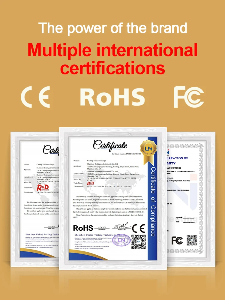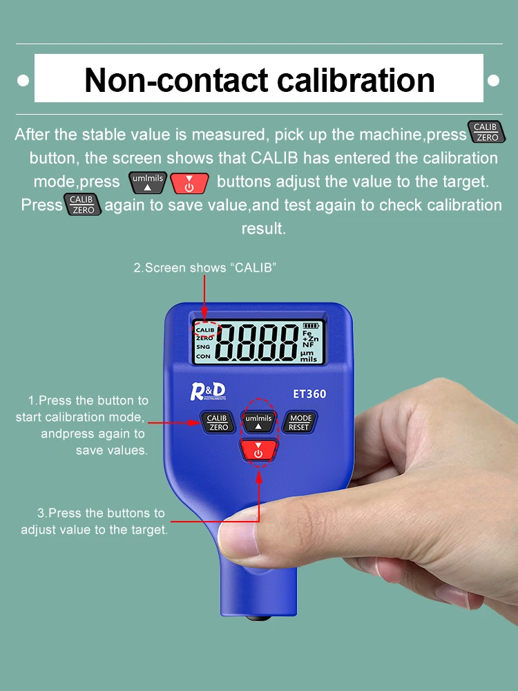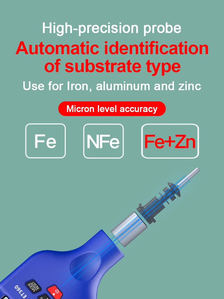 R & D ET360 измеритель толщины покрытия может использоваться не только для измерения немагнитных покрытий, таких как краска, лак, эмаль, хром и гальванизация на ферромагнетизмных металлических подложках, таких как сталь или железо, но также измеряет непроводящие покрытия, такие как краска, анодированные слои или керамика на Немагнитных металлических подложках, таких как медь, алюминий, Литой под давлением цинк, латунь и т. Д. Датчик автоматически определяет подложку и переключает режим измерения. Он широко используется в производстве, металлообработке, химической промышленности, инспекции товаров и других областях.