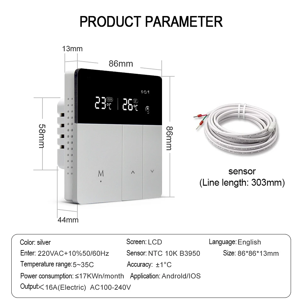 【Точная температура 】 внутренний Датчик пола, восприятие температуры окружающей среды и температуры пола. Автоматическое получение температуры, точность 1 °C.