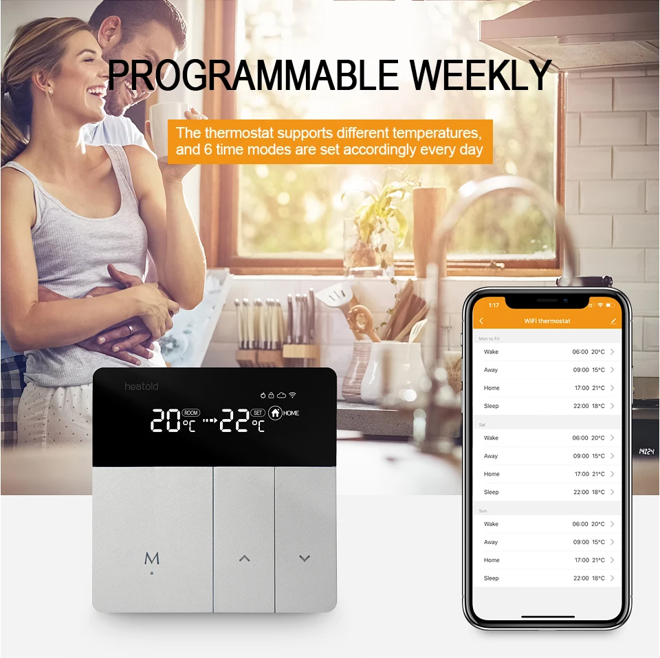 【Weekly programmable】термостат поддерживает различные настройки температуры соответственно с 6 режимами времени ежедневно.