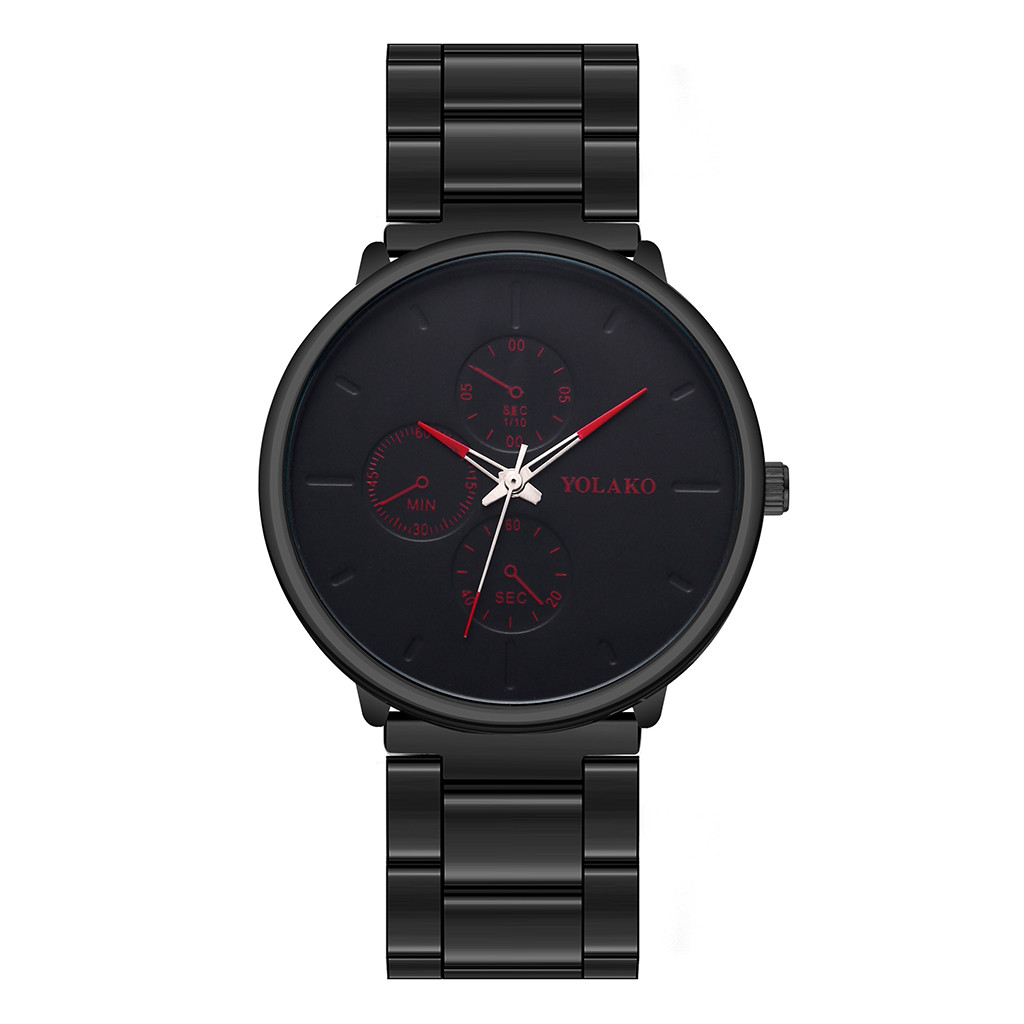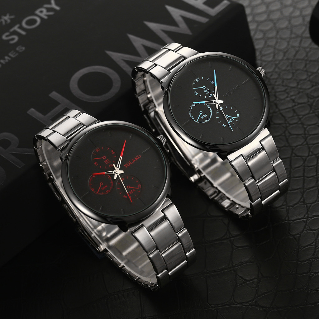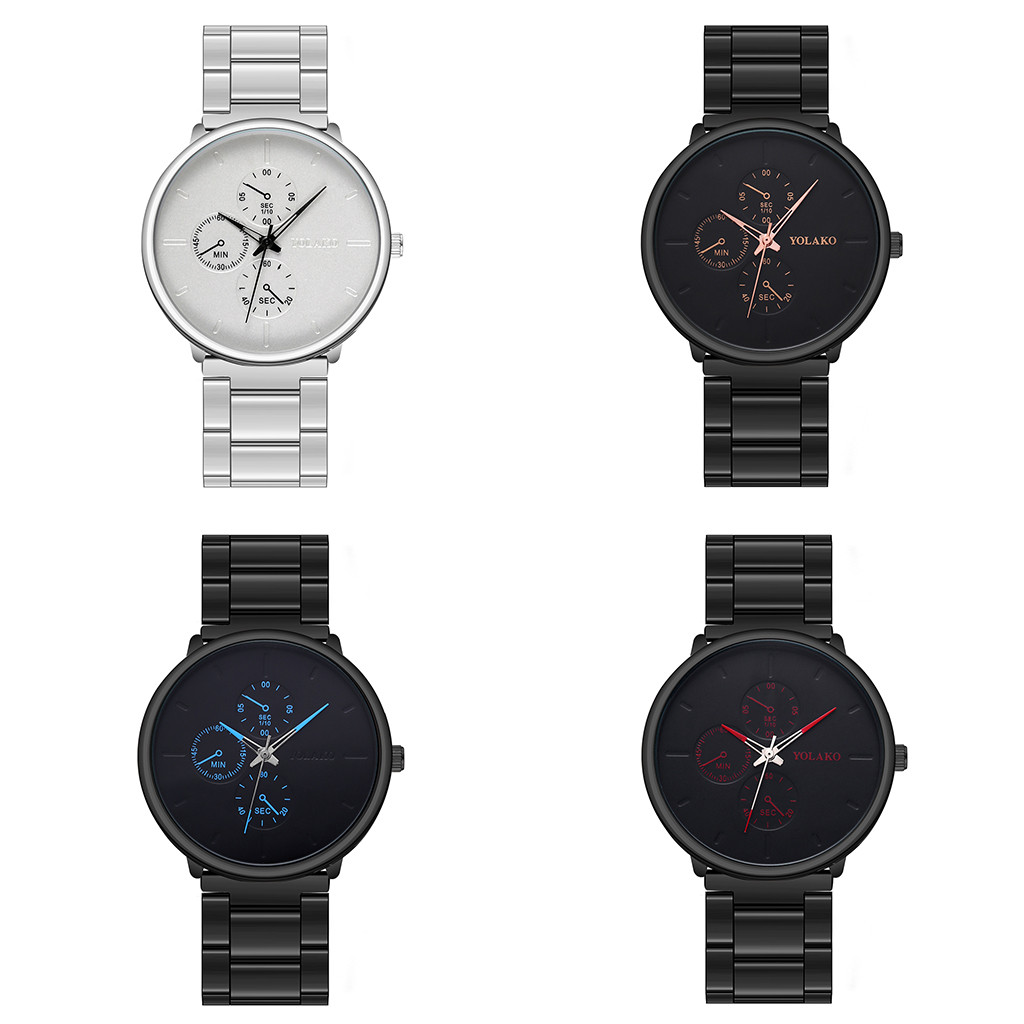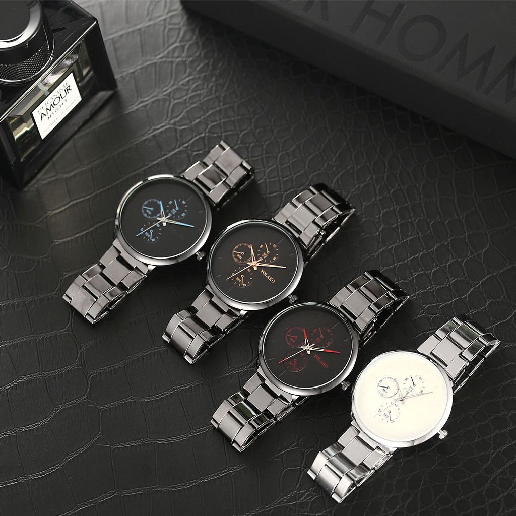 YOLAKO мужские часы сплав наручные часы с ремешком-сеткой простые поддельные три глаза повседневные часы