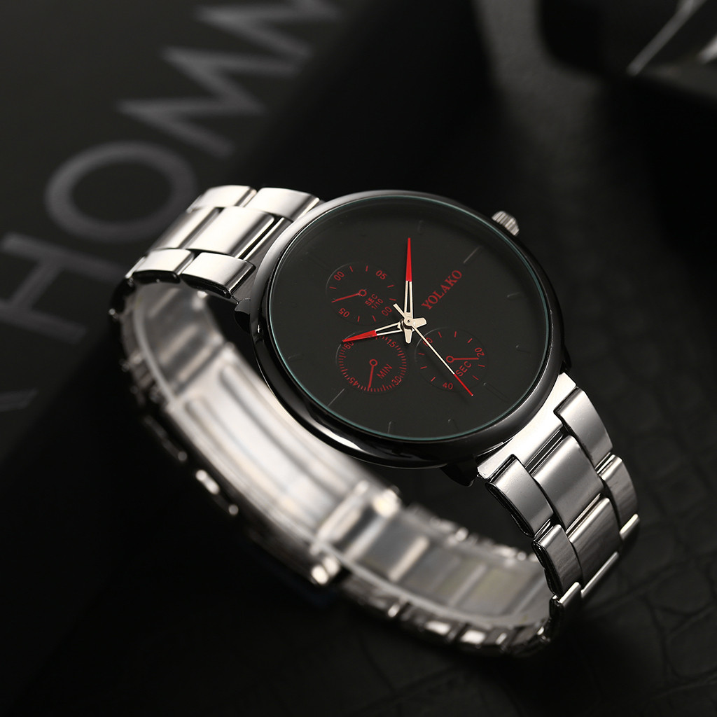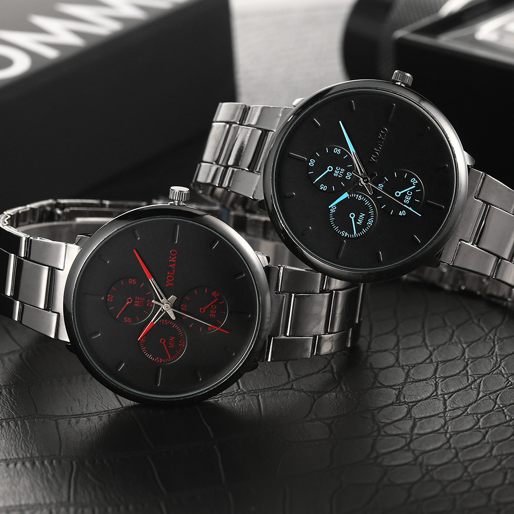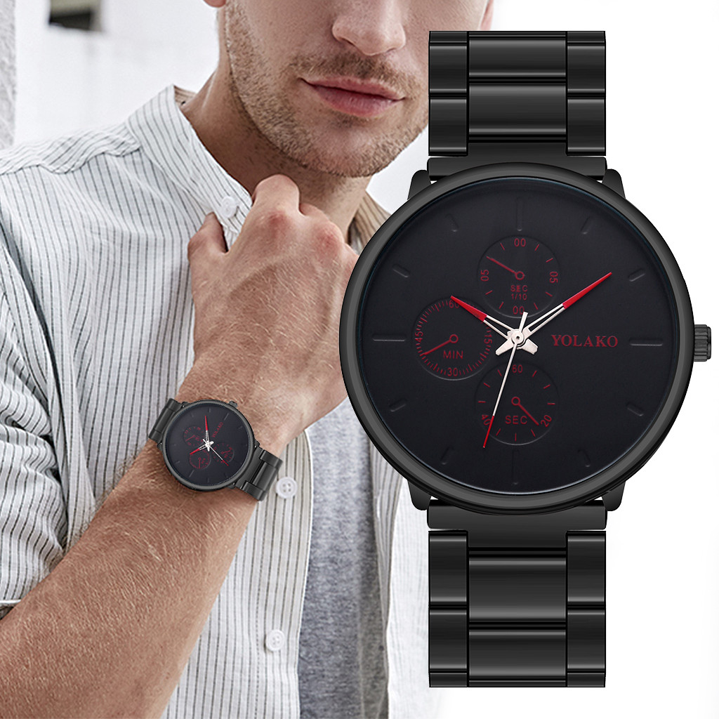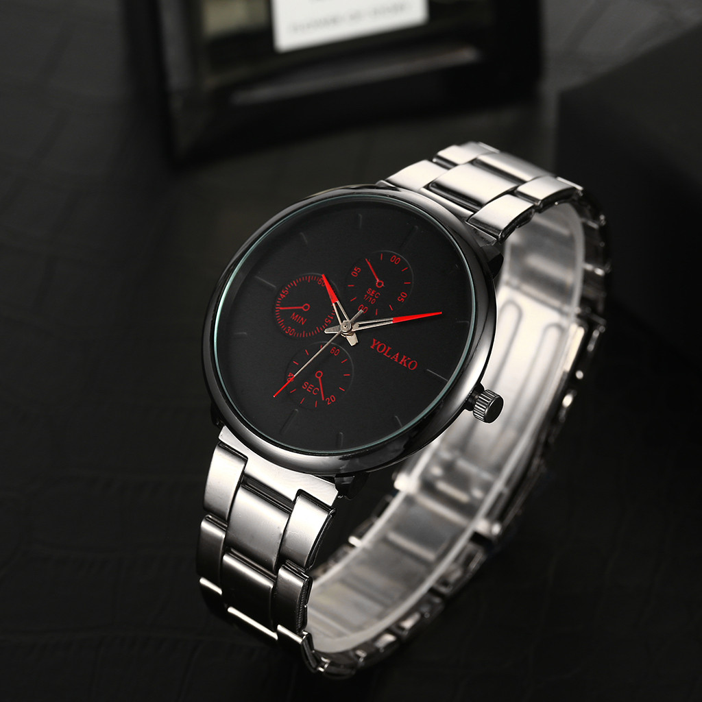 YOLAKO мужские часы сплав наручные часы с ремешком-сеткой простые поддельные три глаза повседневные часы