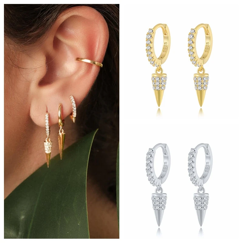 925 стерлингового серебра молния болт звезда кулон серьги-кольца для женщин висячий замок Циркон конус имитация жемчуга Очаровательная Серьги