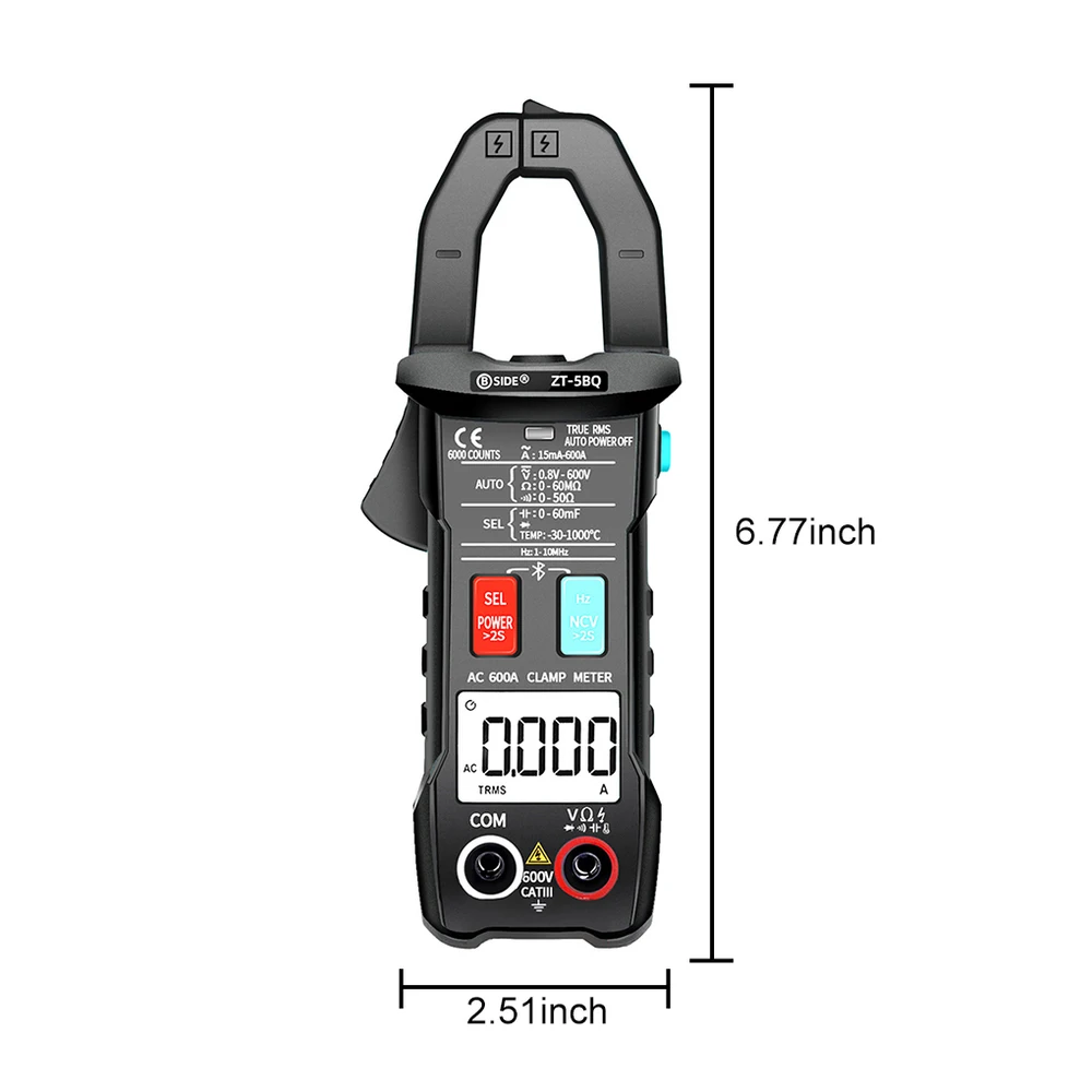 Простота в использовании: Этот вольтметр с зажимом имеет функцию автоматического диапазона и может отображать 6000 подсчета и удерживать данные.