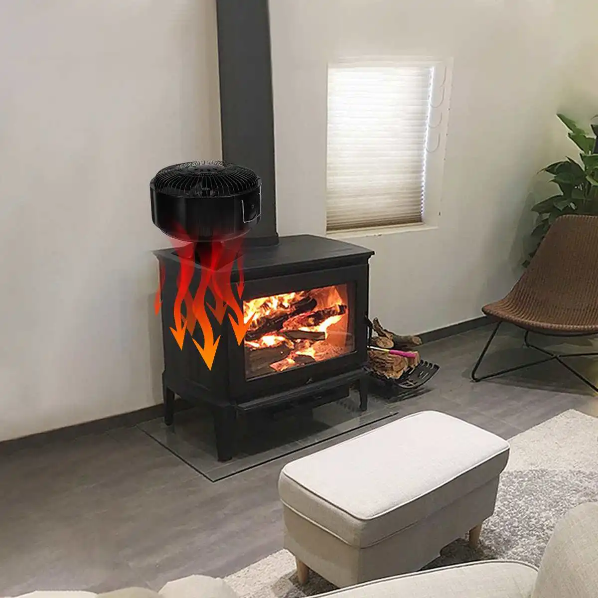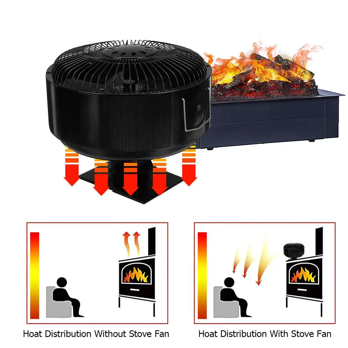 -Запуск автоматически: технология обновления, более высокая скорость, больший объем воздуха. Вентилятор для печи, работающий от тепловой энергии, предназначен для циркуляции теплого воздуха, создаваемого деревом/углем или гранулом. Эффективно циркулирует теплый воздух по всему дому.