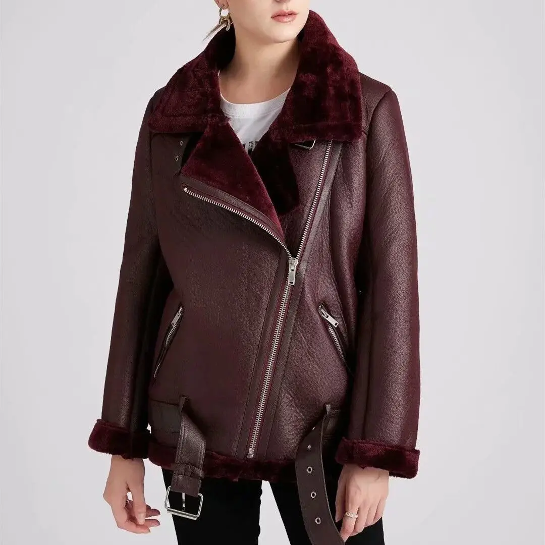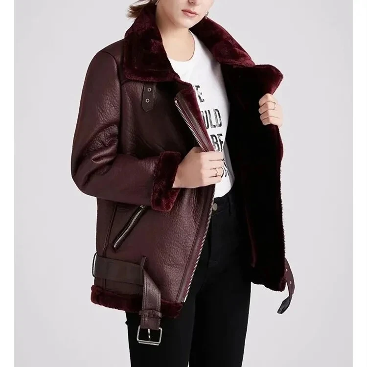 2021 Winter Coats Women Thick Faux Leather Fur Sheepskin Coat Female Fur Leather Jacket Aviator Jacket Parkas Outwear