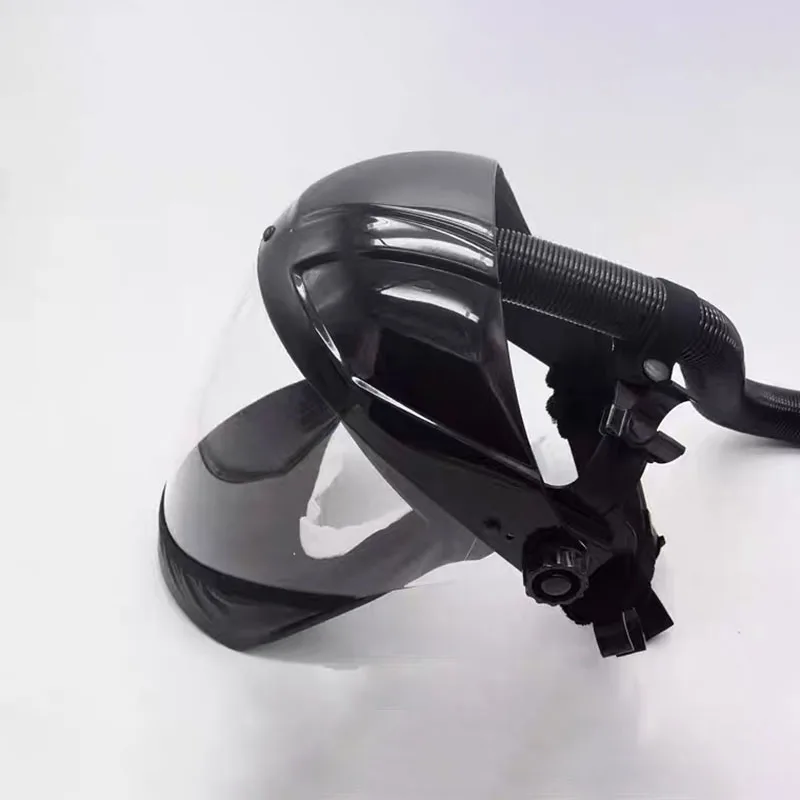 Вентилятор увеличивает подачу чистого воздуха, чтобы увеличить давление воздуха в маске, так что грязный воздух и пыль не могут погружаться обратно в маску. Обратите внимание, что эта маска не полностью запечатана, и воздух в маске должен быть разряжен с верхней части головы и ушей. Не подходит для случаев, когда требуется герметичная маска.