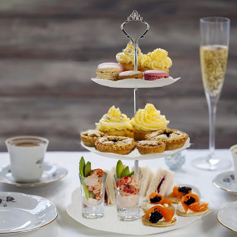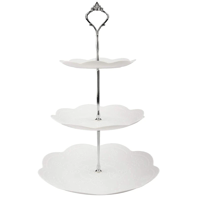 Элегантный художественный дизайн: 3 слоя лоток-это не только фрукты, торт и десертная тарелка, но и элегантным украшением для вашего удобства. Идеальный эстетический дизайн, подходит для украшения ресторана или стола. Подходит для применения в качестве вечерние подарок.