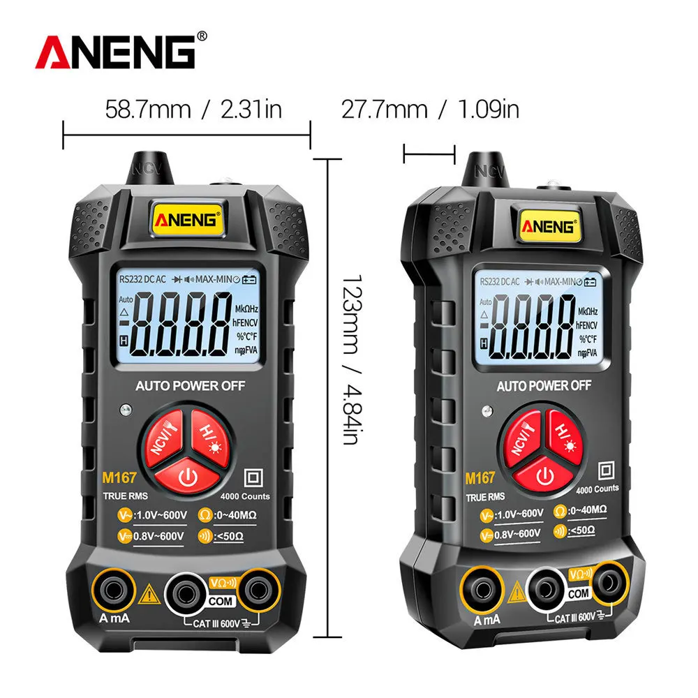 ANENG M167 цифровой мини мультиметр AC/DC Электрический тестер приборов Авто Multimetro истинный Rms транзистор NCV мультиметр