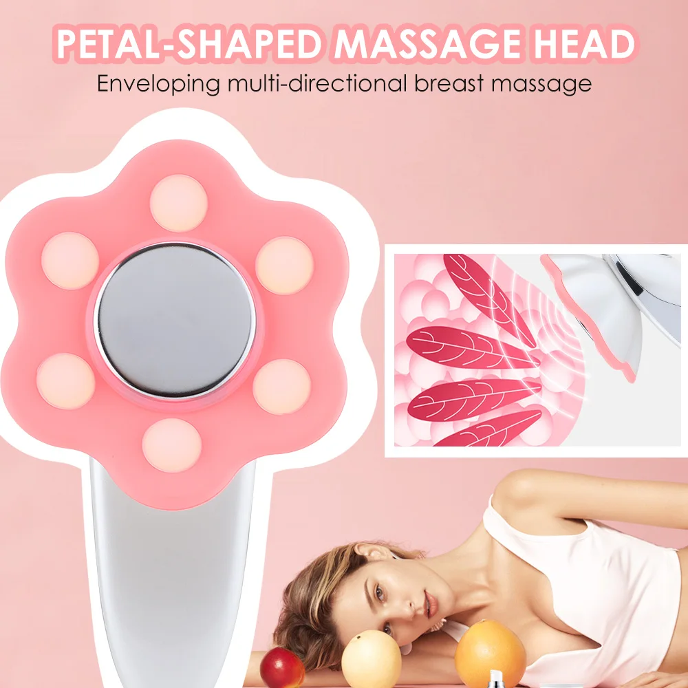 6.Массажная головка в форме лепестка соответствует эргономичному дизайну, подходит для линии груди и может массировать грудь в нескольких направлениях.