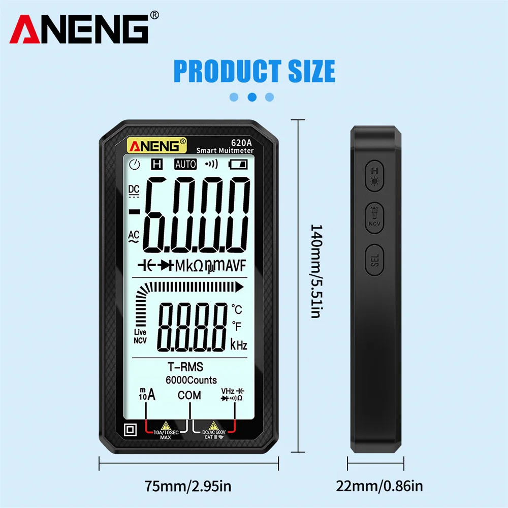 ANENG 620A Цифровой мультиметр-транзистор тестеры 6000 отсчетов истинный RMS автоматический измеритель электрической ёмкости измерение температурного сопротивления