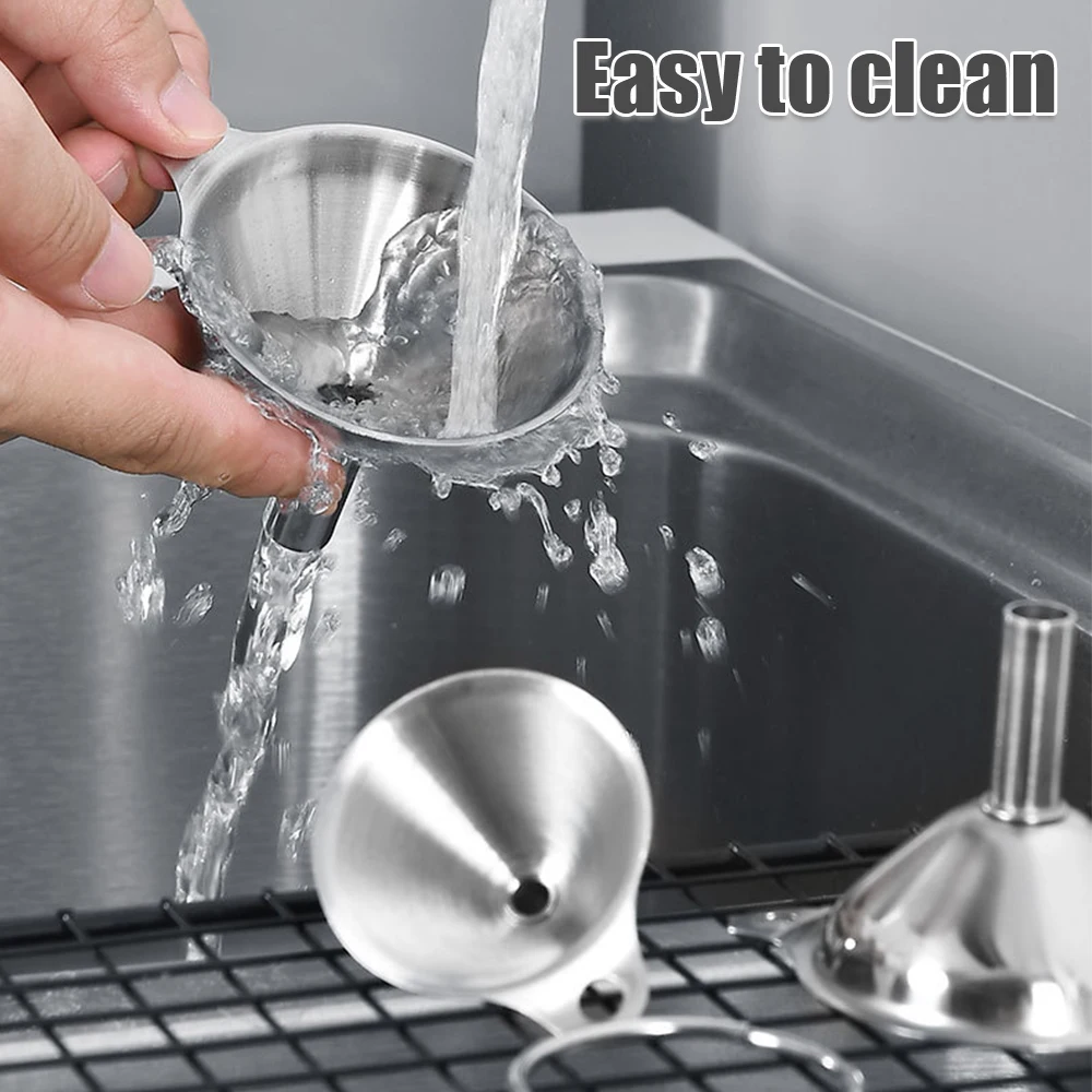 Высокая устойчивость к ржавчине, царапинам, разрыву или изгибу. Каждая Воронка имеет идеально узкий стебель, позволяет жидкости быстро и легко проходить через трубку, помогает избежать беспорядка и разливов при наполнении масел, джемов, спиртных напитков и т. Д.