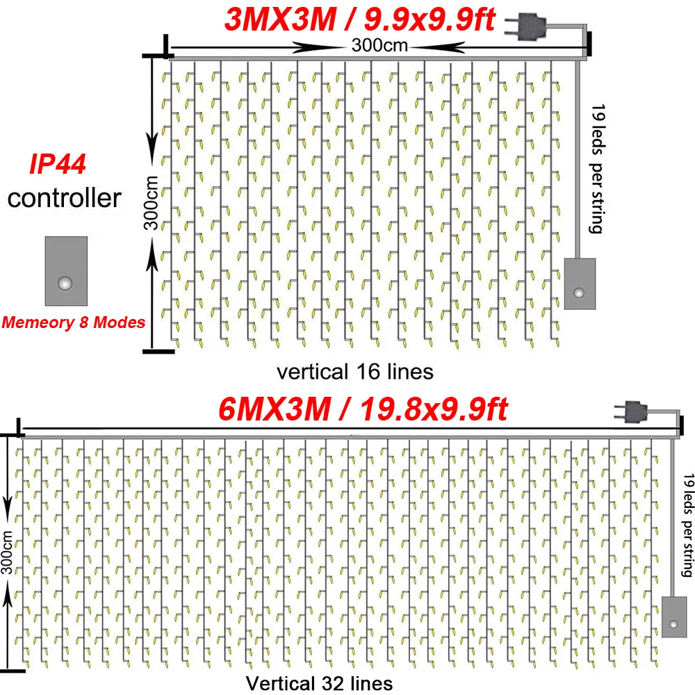 Количество СВЕТОДИОДНЫЙ: 3 м * 3 м: 304 светодиодный s(16 струн, 19 шт. светодиодный s на нитку)