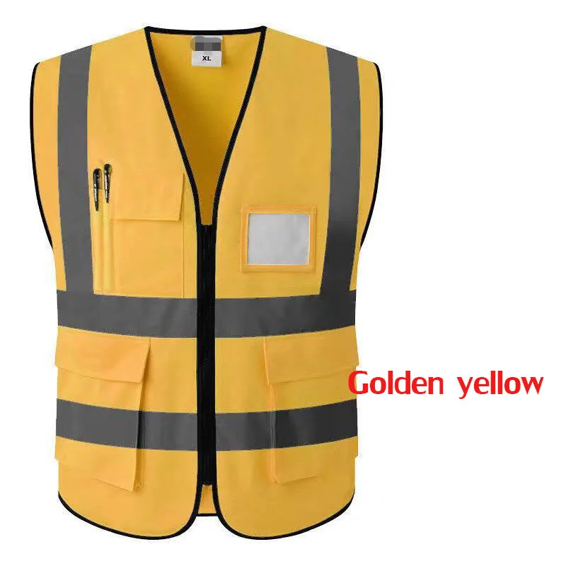4XL высокая видимость молния передний жилет безопасности со светоотражающими полосками для езды на велосипеде и мотоцикле одежда безопасности с несколькими карманами