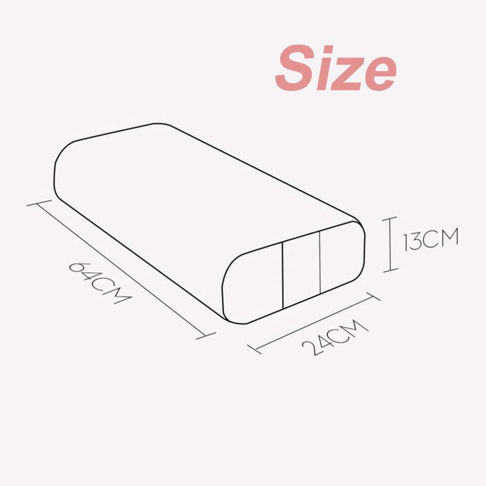 Длина этой подушки 64 см, ширина 24 см и высота 13 см.