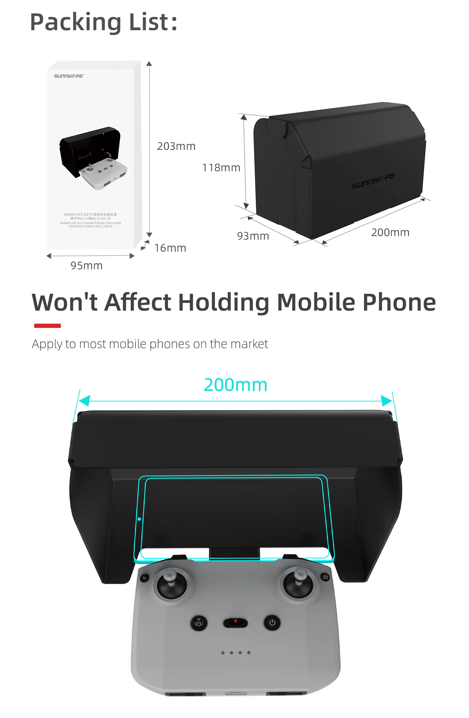 DJI Mini 2 Солнцезащитная бленда с дистанционным управлением, Солнцезащитный монитор для телефона, Солнцезащитная бленда для DJI Mavic 3/Mavic Air 2/2 S/MINI 2/mini 3 pro, контроллер дрона