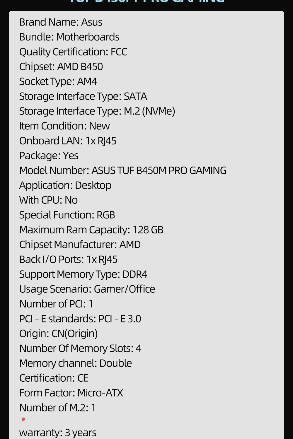 Номер модели: ASUS TUF B450M PRO GAMING