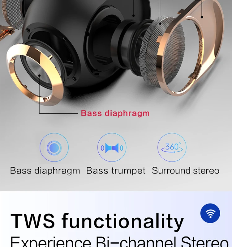 Функция TWS, эффект стереозвука 360 °, специально разработанная функция TWS, реализующая эффект стереозвука, который заполняет комнату, обеспечивая объемный эффект 3D