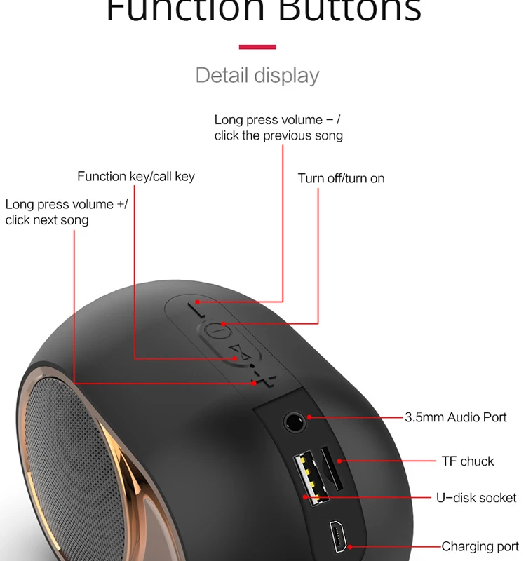 Простое управление кнопками, вы можете включить/выключить, воспроизведение/пауза, переключать режимы, пропускать песни, регулировать громкость и т. д., нажав кнопки.