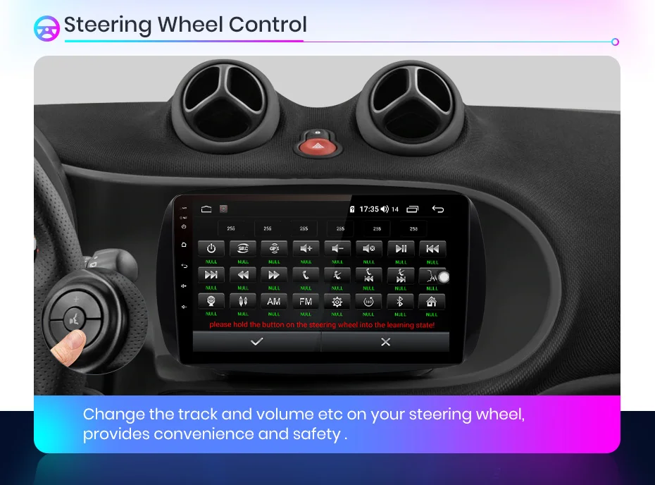 Setting--car infotainment--SWC--click clearall first ---then click the icons. When it flashes, press the button on the steering wheel to match the icon. After learning successfully, it will change color.