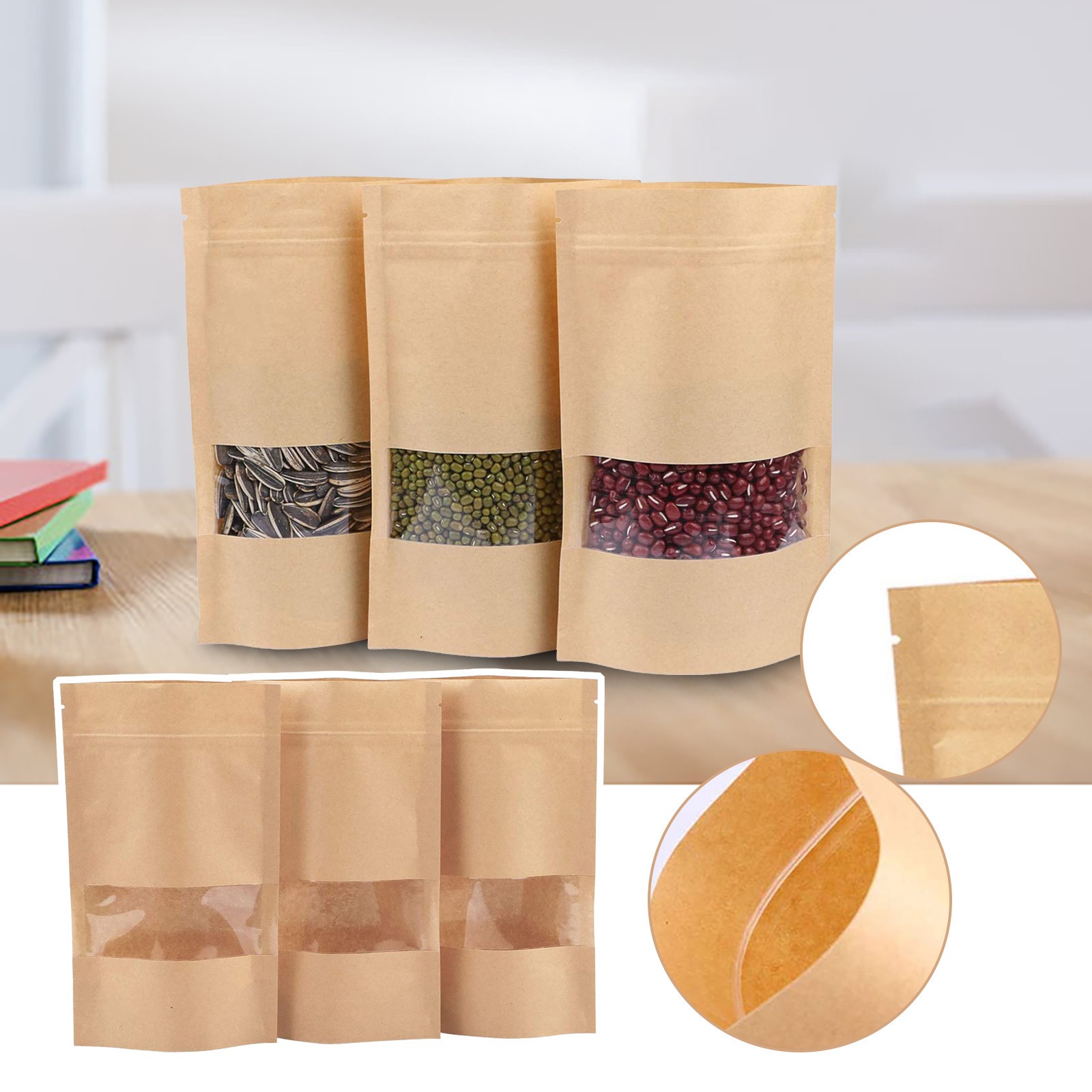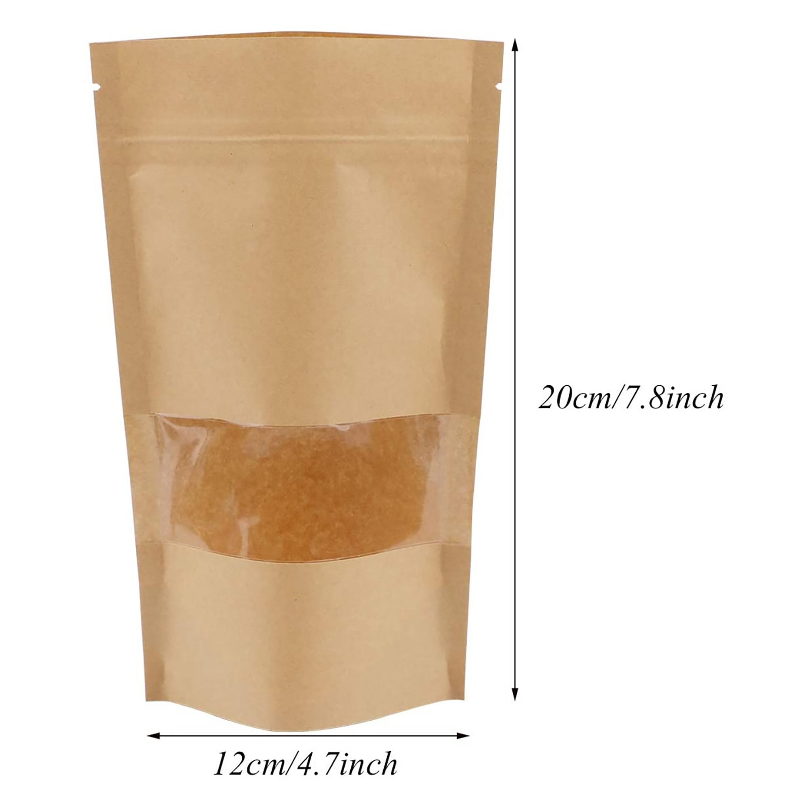 Упаковка из 100 крафт-бумажных пакетов для еды, с молнией, фиксирующей часть ниже разрыва, мешок может стоять, когда наполнен едой С прозрачным окошком внизу, вы можете легко определить, какая еда внутри коровьей молнии стоячий мешок СЛЕЗОТОЧИВОЕ открытие сверху, легко рвать после запечатывания с помощью термоусадочной машины Размер: 20x12 смСпецификация: