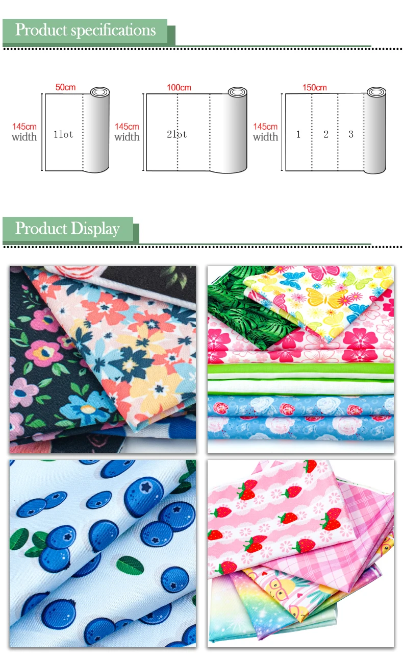Материал: набивная ткань Цвет: как на картинке Размер: 50 см x 145 см/Предмет: 1 мм Вес: 100 г/шт Использование: домашнее украшение, обувь, сумки, пэчворк, стеганое шитье, подушки, подушки и любые изделия из ткани.