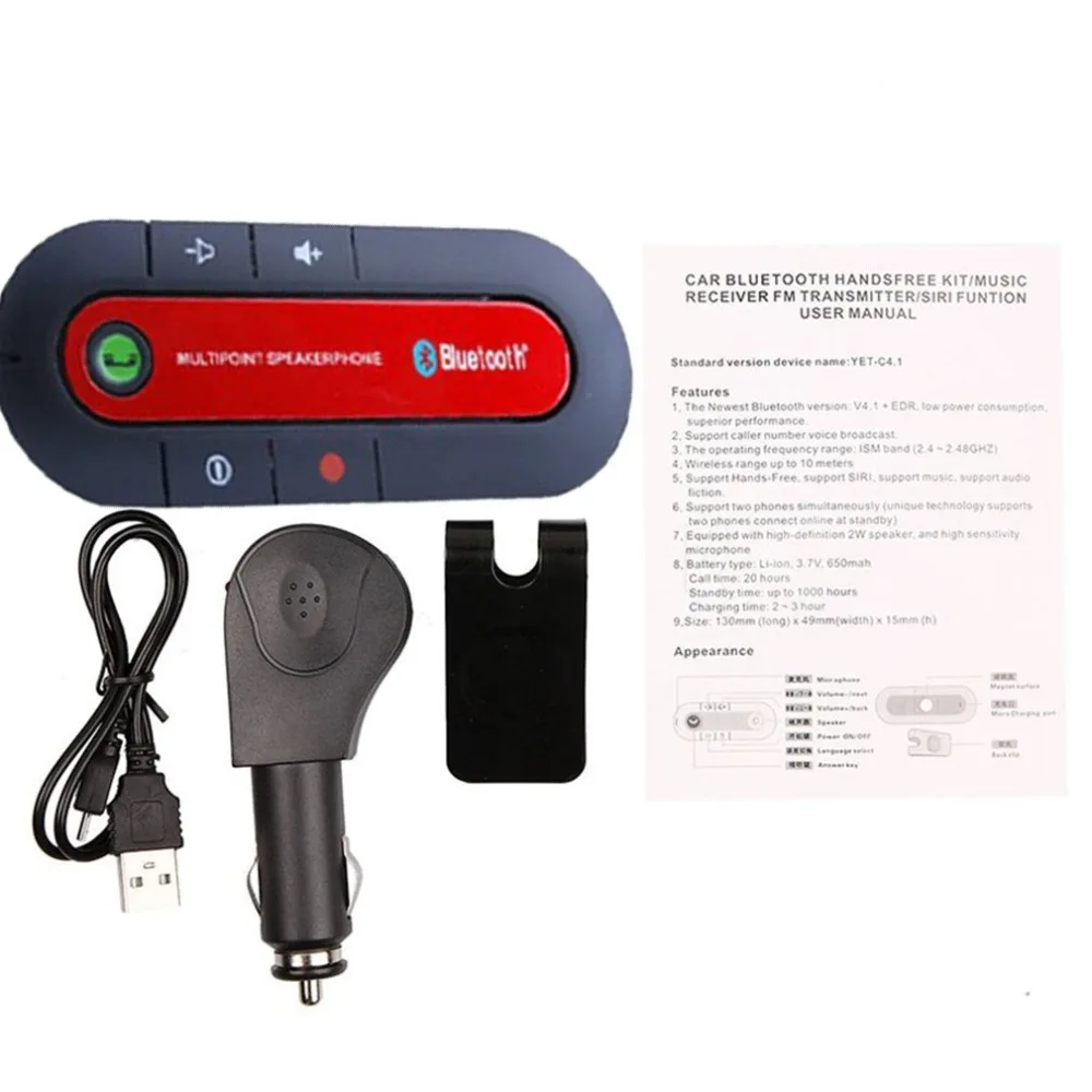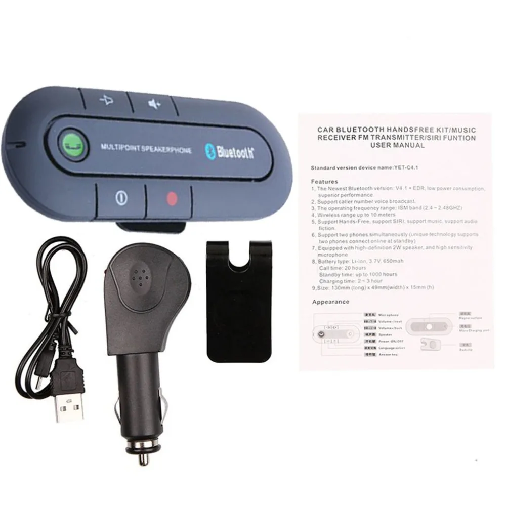 ЭтоСовместимость с BluetoothВстроенный мощный магнит громкой связи, Bluetooth 4,1 hands-free специально для вашего удобства и беспроводной связи. Подвесная конструкция солнцезащитного козырька не занимает ограниченное пространство, и качество вызова отличное.