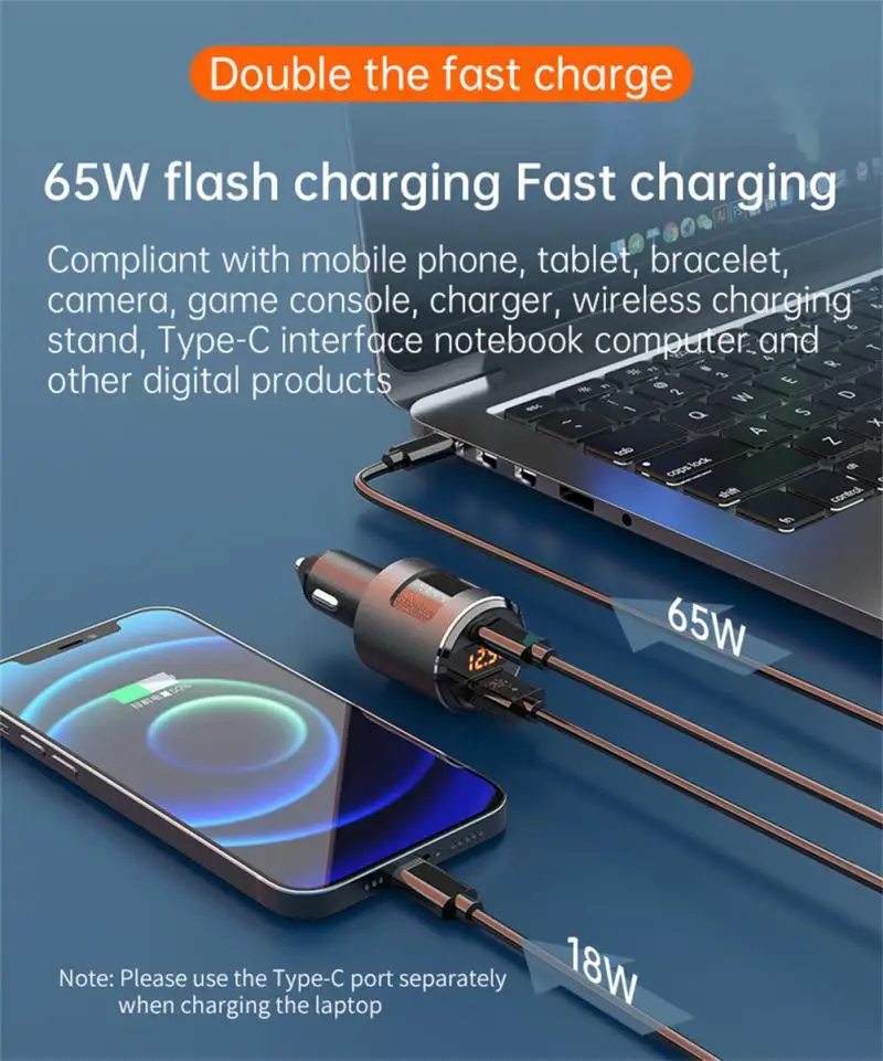 2.TYPE-C и USB быстрая зарядка TYPE-C с одним портом Поддержка до 65 Вт, а USB с одним портом Поддержка до 18 Вт.