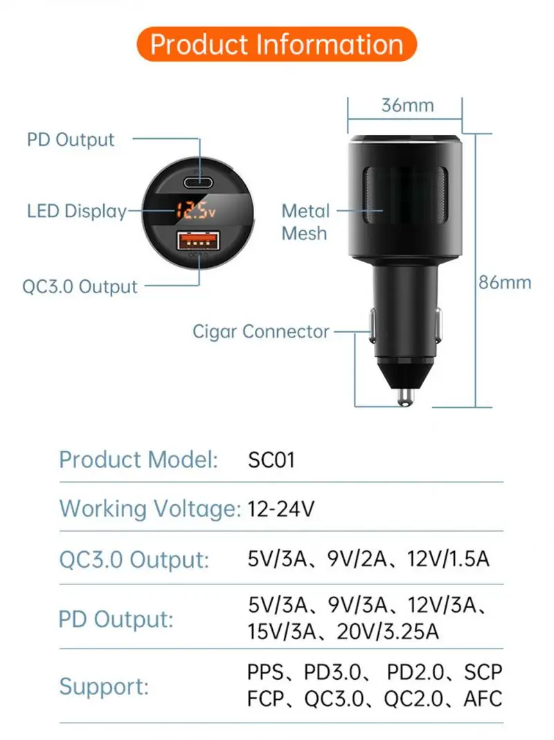 5. QC3.0 Выход: 5V/3A; 9В/2A, красный/зеленый/синий 12V/1A.
