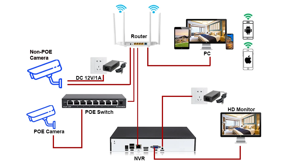 Ip-камера без POE/ip-камера POE работает с NVR без POE