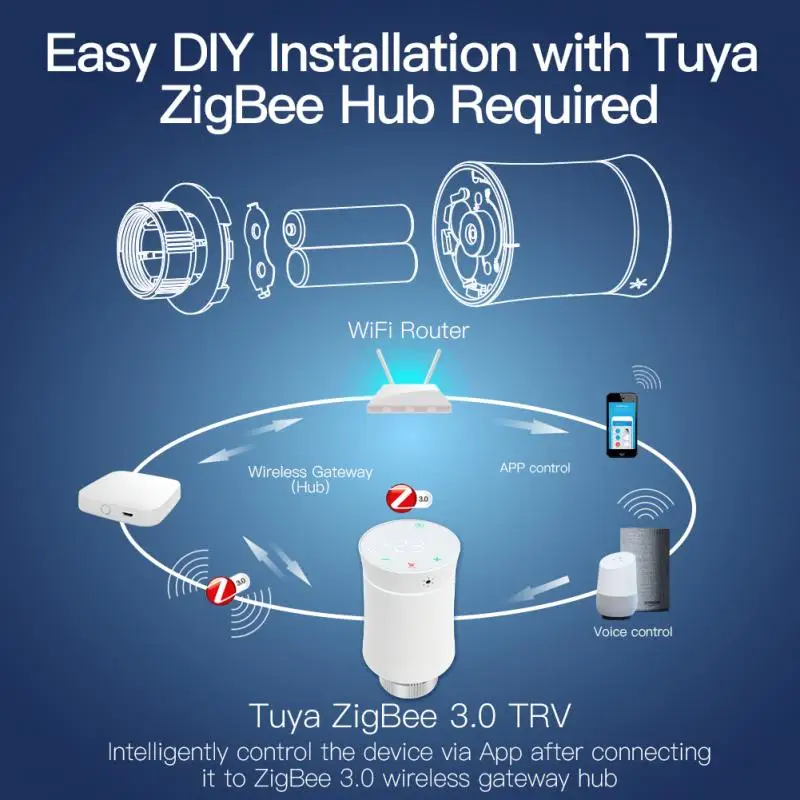 5. Голосовое и дистанционное управление для беспроводного шлюза Tuya ZigBee: Поддержка дистанционного управления через приложение через ваш смартфон, вместе с голосовым управлением без рук через Alexa и Google Assistant после успешного подключения Клапан в приложение Tuya /Smart Life на основе одного беспроводного шлюза Tuya ZigBee; Проверка окон и схема кривой температуры добавляются в приложение для мониторинга комнатной температуры в реальном времени.