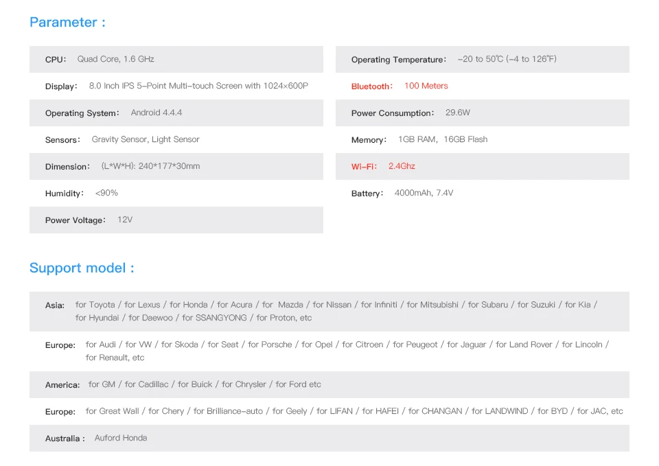 Азия: для Toyota/для Lexus, forNissan/для Infiniti, для Honda, forAcura, для Isuzu, для Chery, forFord Transit, для Roewe, для MG.