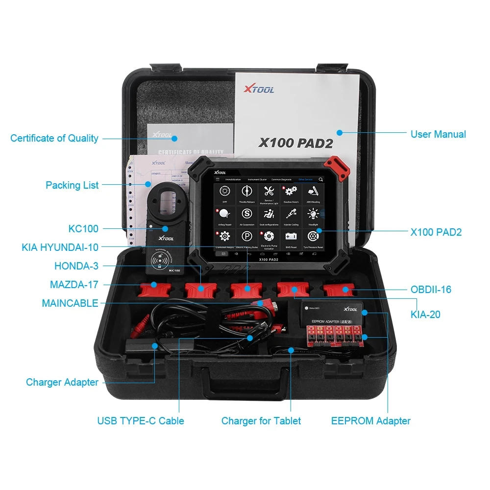 X100 PAD2 Pro-замечательный программист для ключей планшета! Он не только предоставляет клиентам профессиональные ключевые программирование, но и наиболее необходимые специальные функции для мастерской. X100 PAD2 является планшетной ветвью с новейшими технологиями для выполнения ключевой программирующий, пройденное расстояние в милях регулировки, сброс давления светильник сбросить сброс давления, светильник сброс, давление в шинах Предупреждение светильник, сброс EPB, сброс сброс дроссельной заслонки, сброс ДПФ, сброс батареи, Калибровка угла рулевого управления и OBD-II Диагностика двигателя, И особенно добавляется с VW 4th и 5th IMMO.