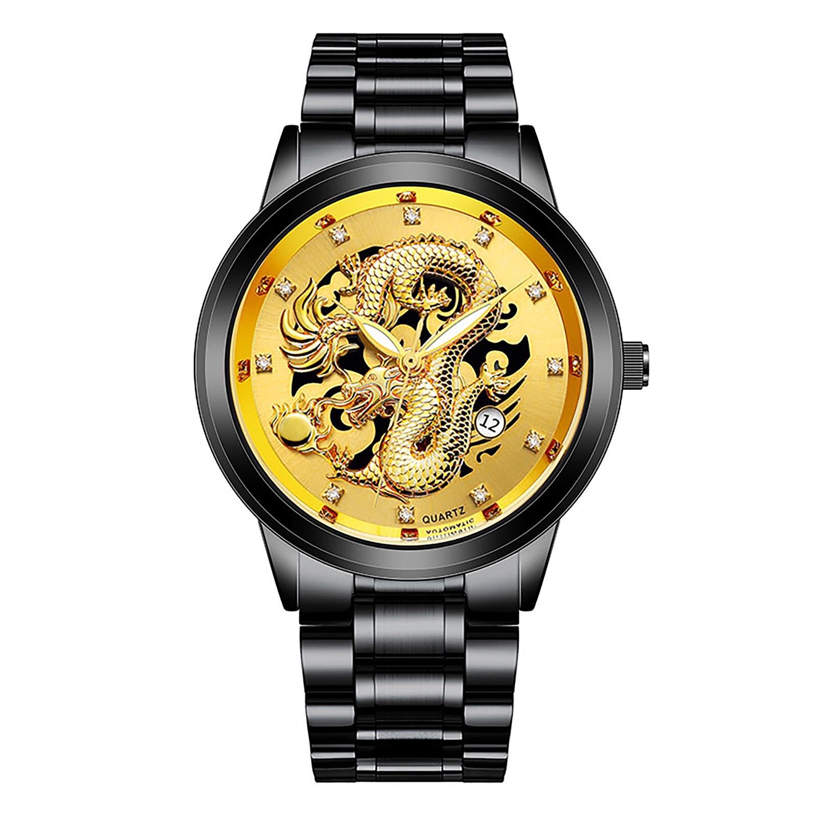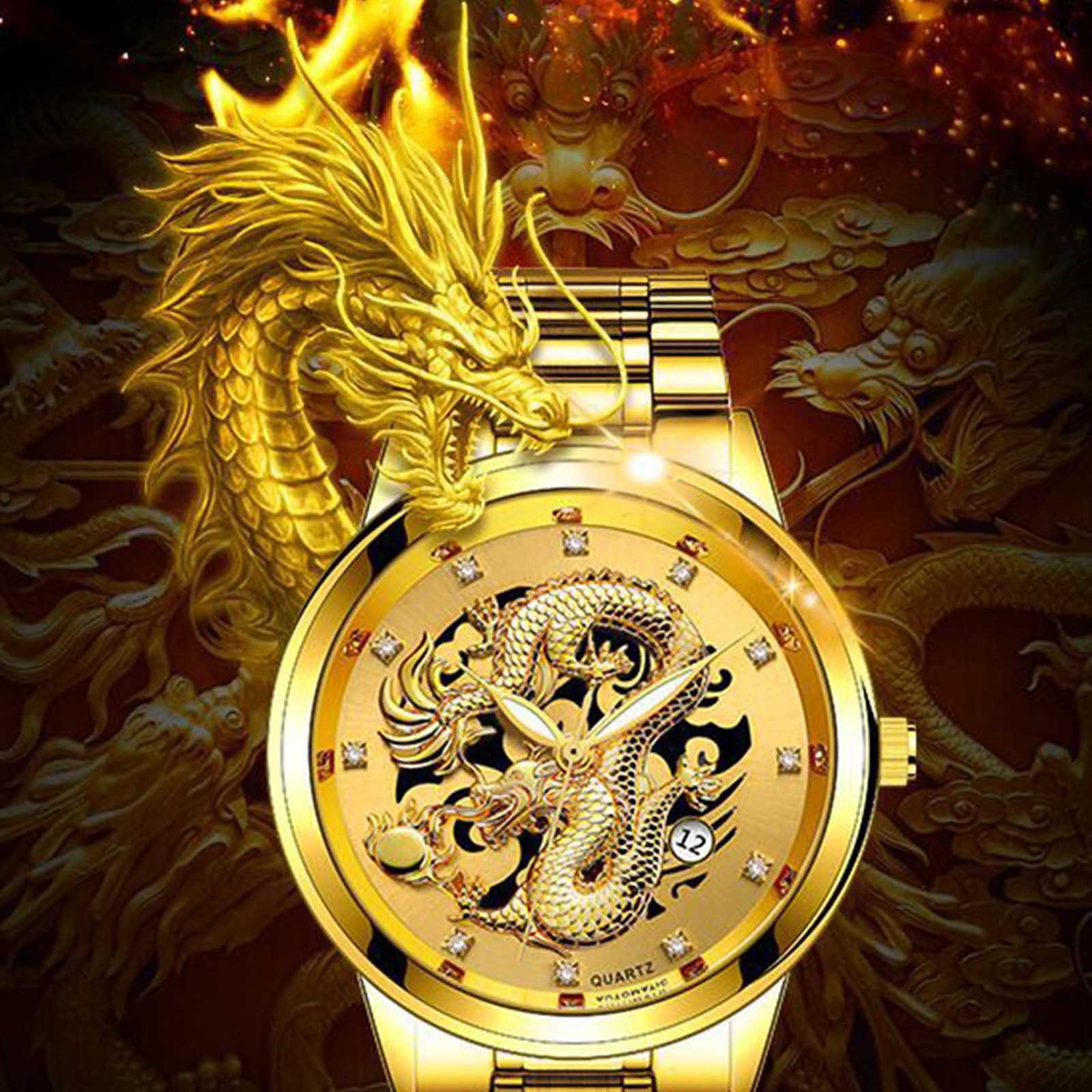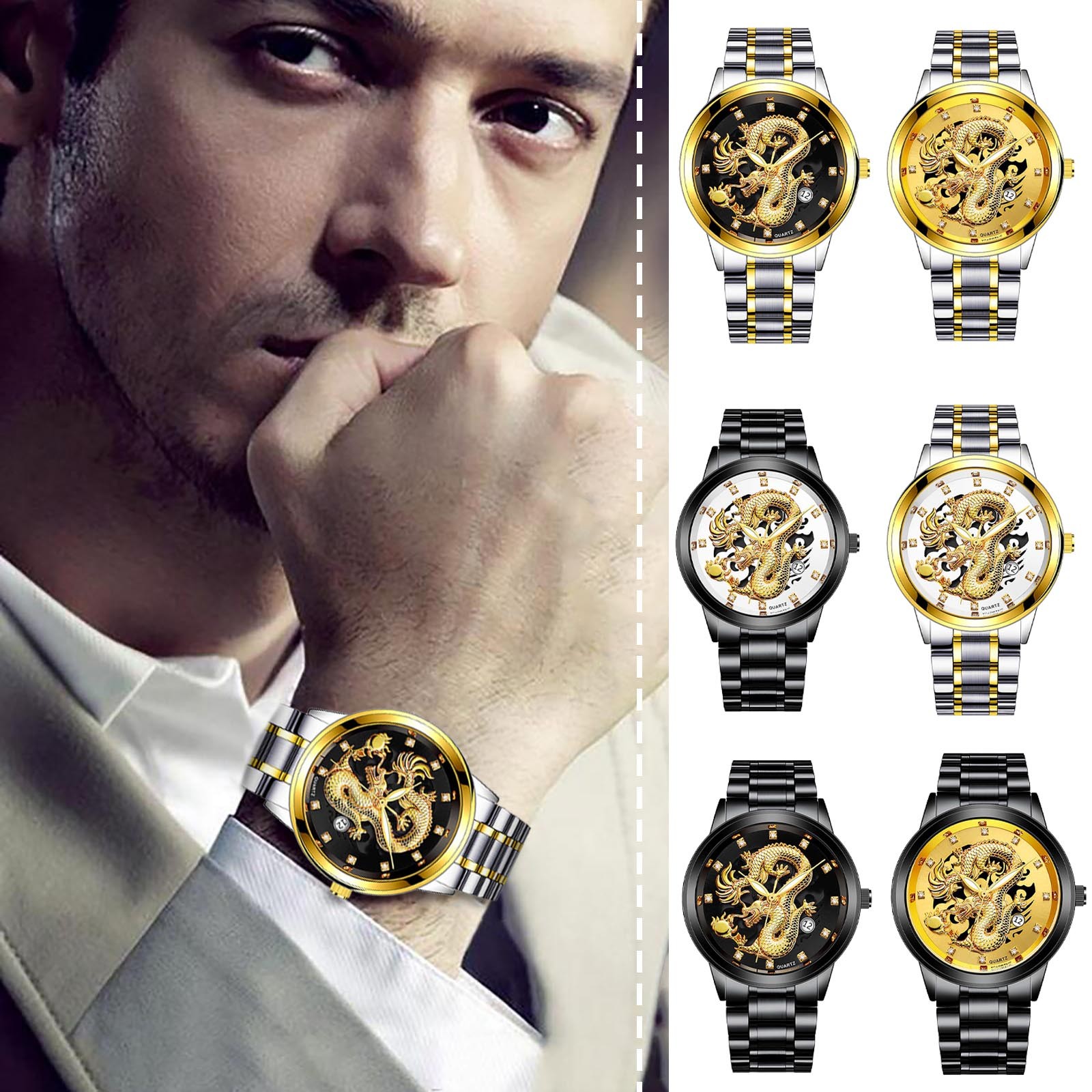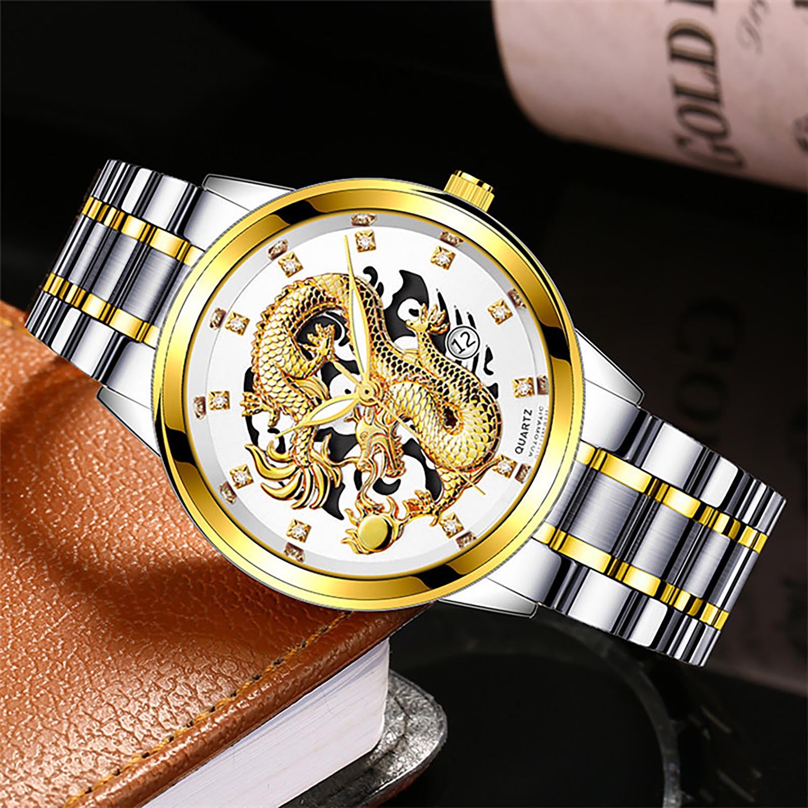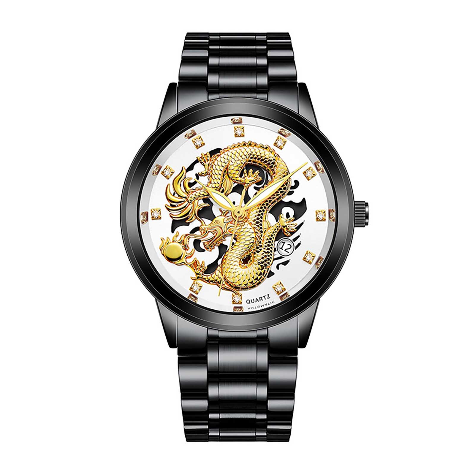 Мужские часы со стальным ремешком, Золотая фигура дракона, модные властные мужские часы