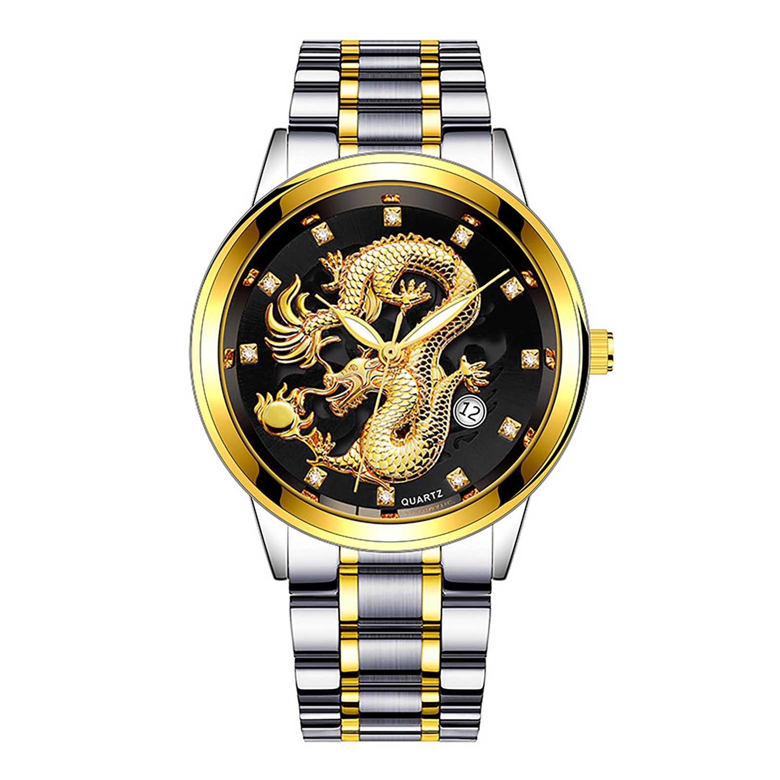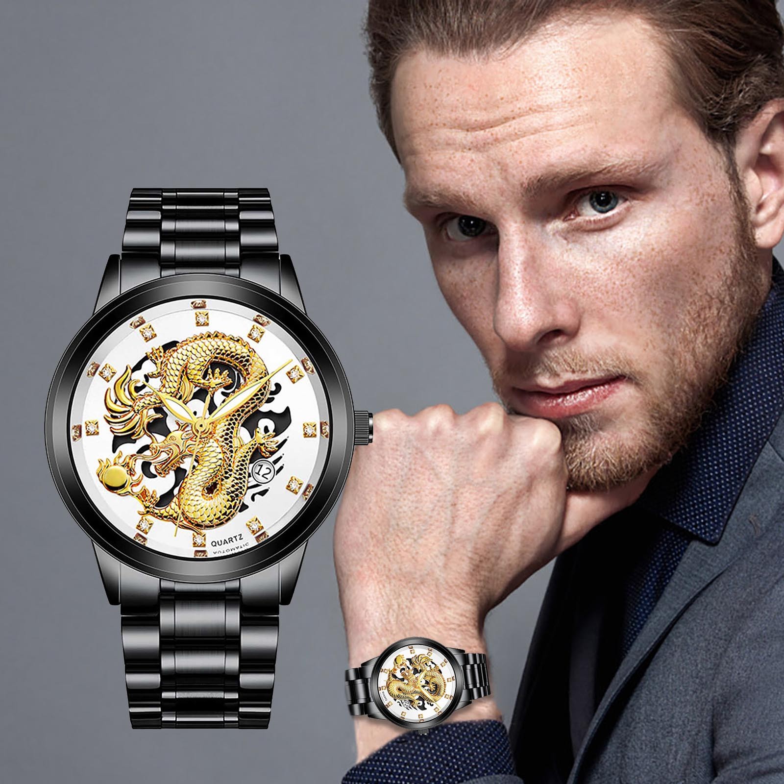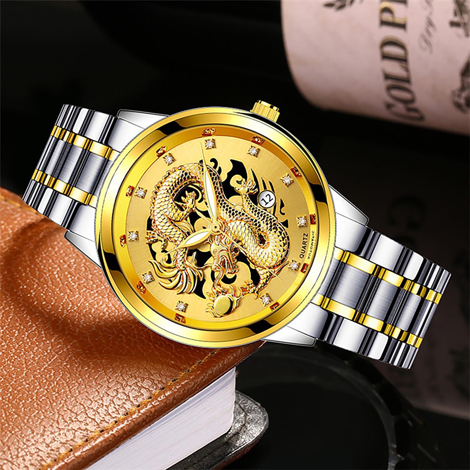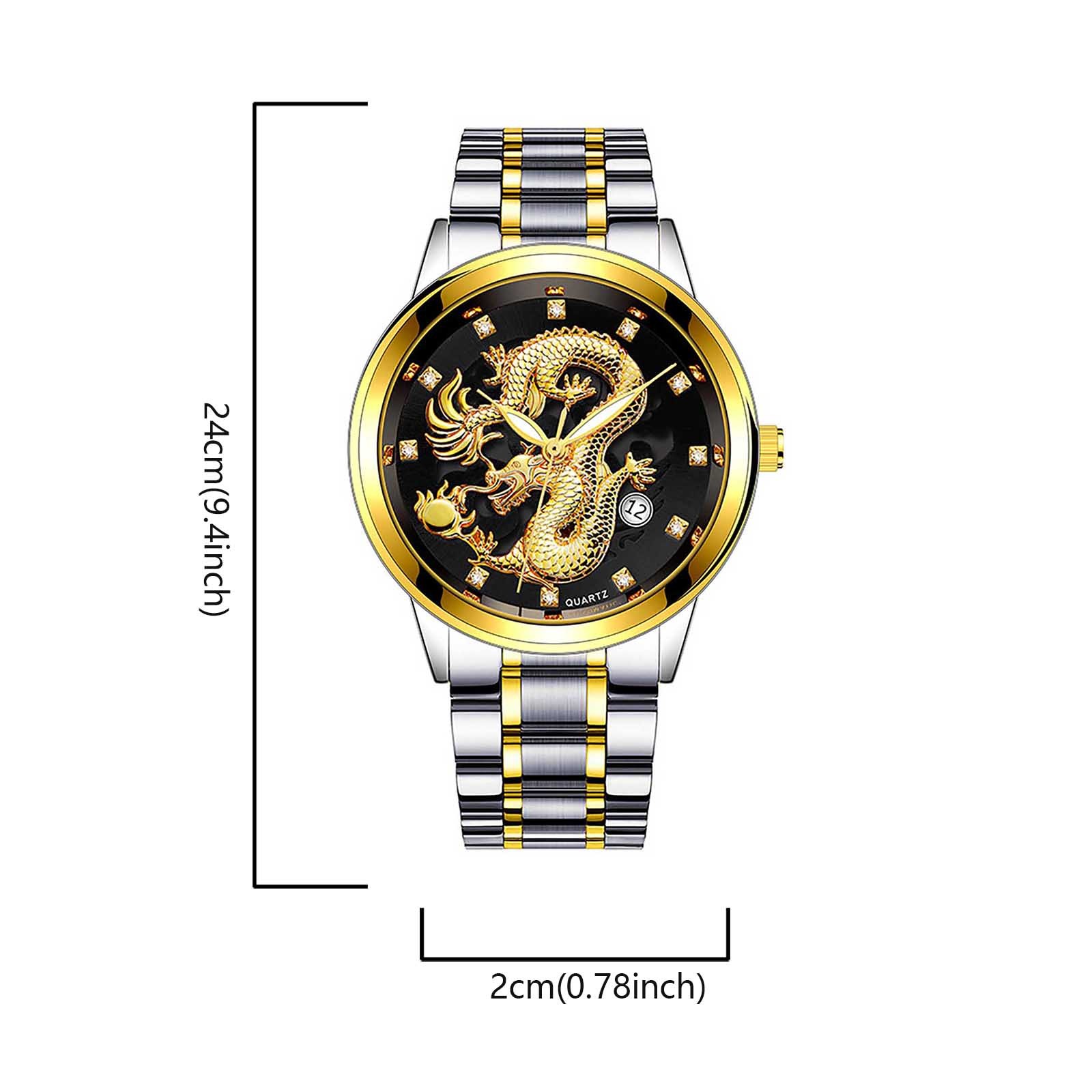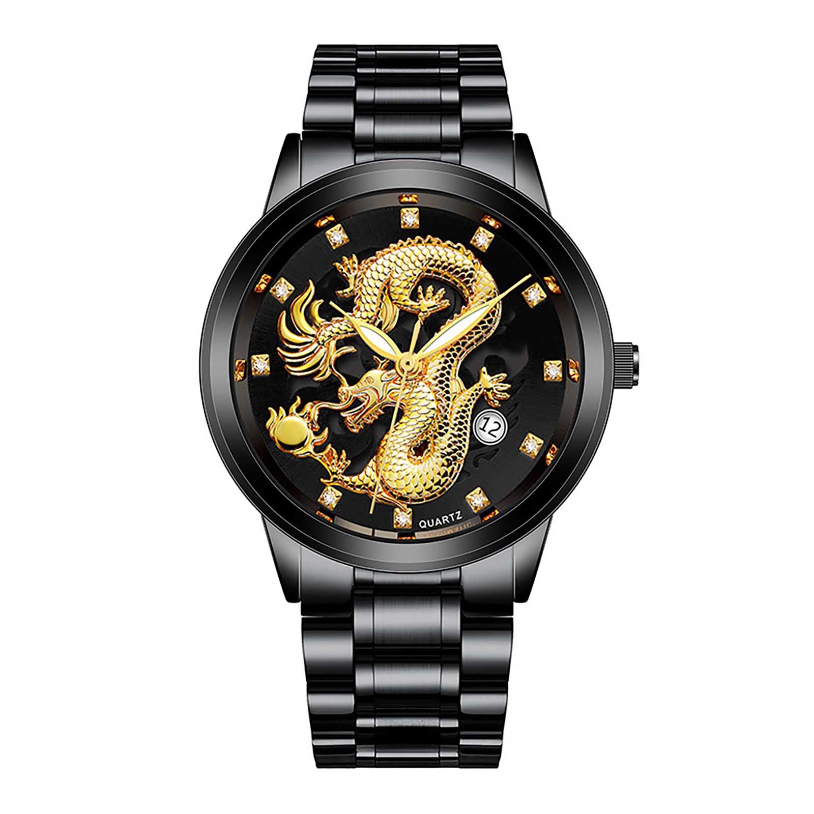 Мужские часы со стальным ремешком, Золотая фигура дракона, модные властные мужские часы
