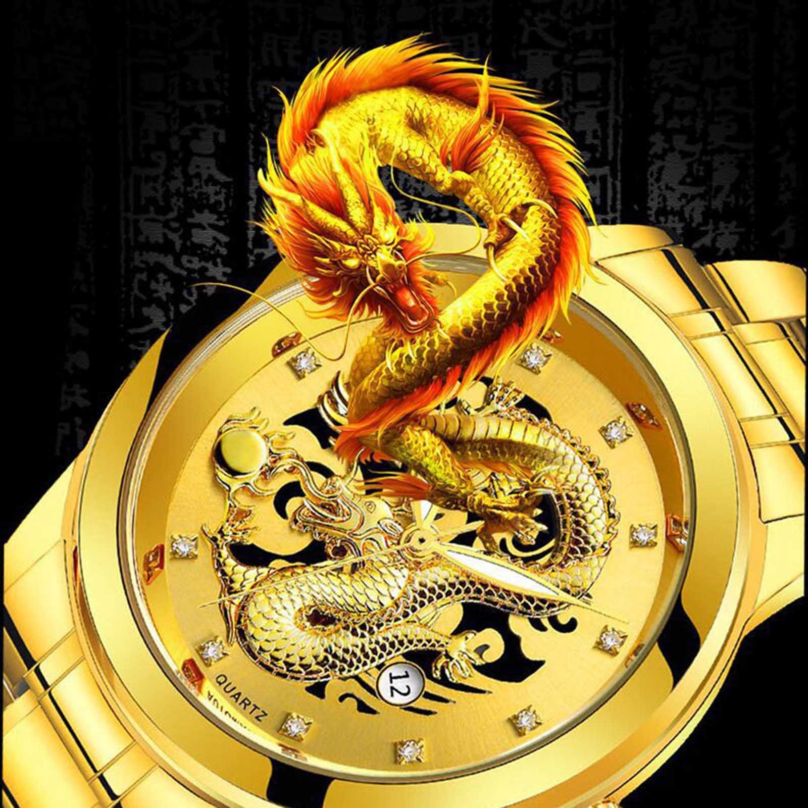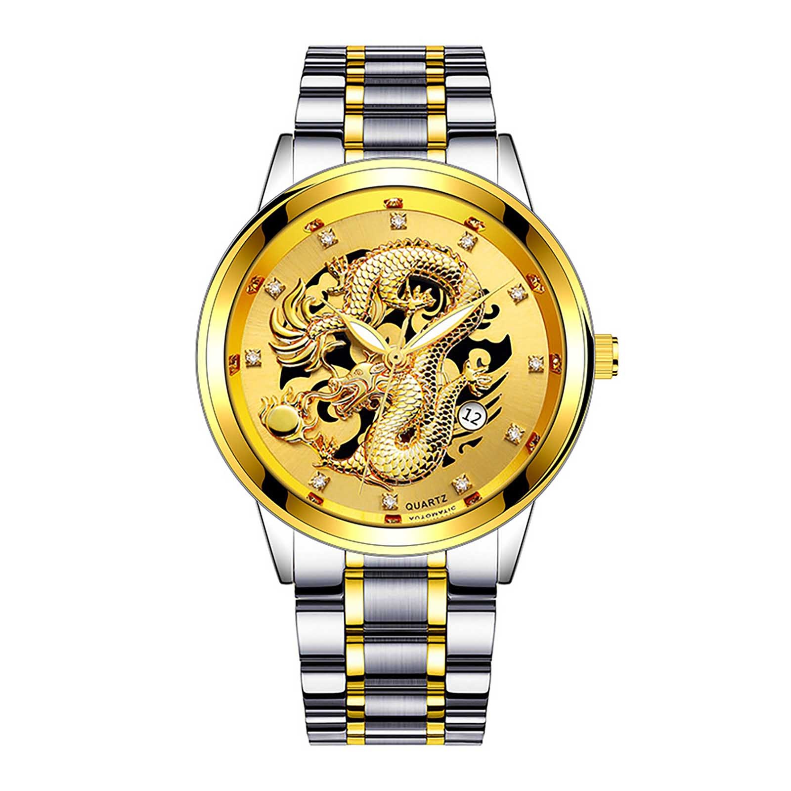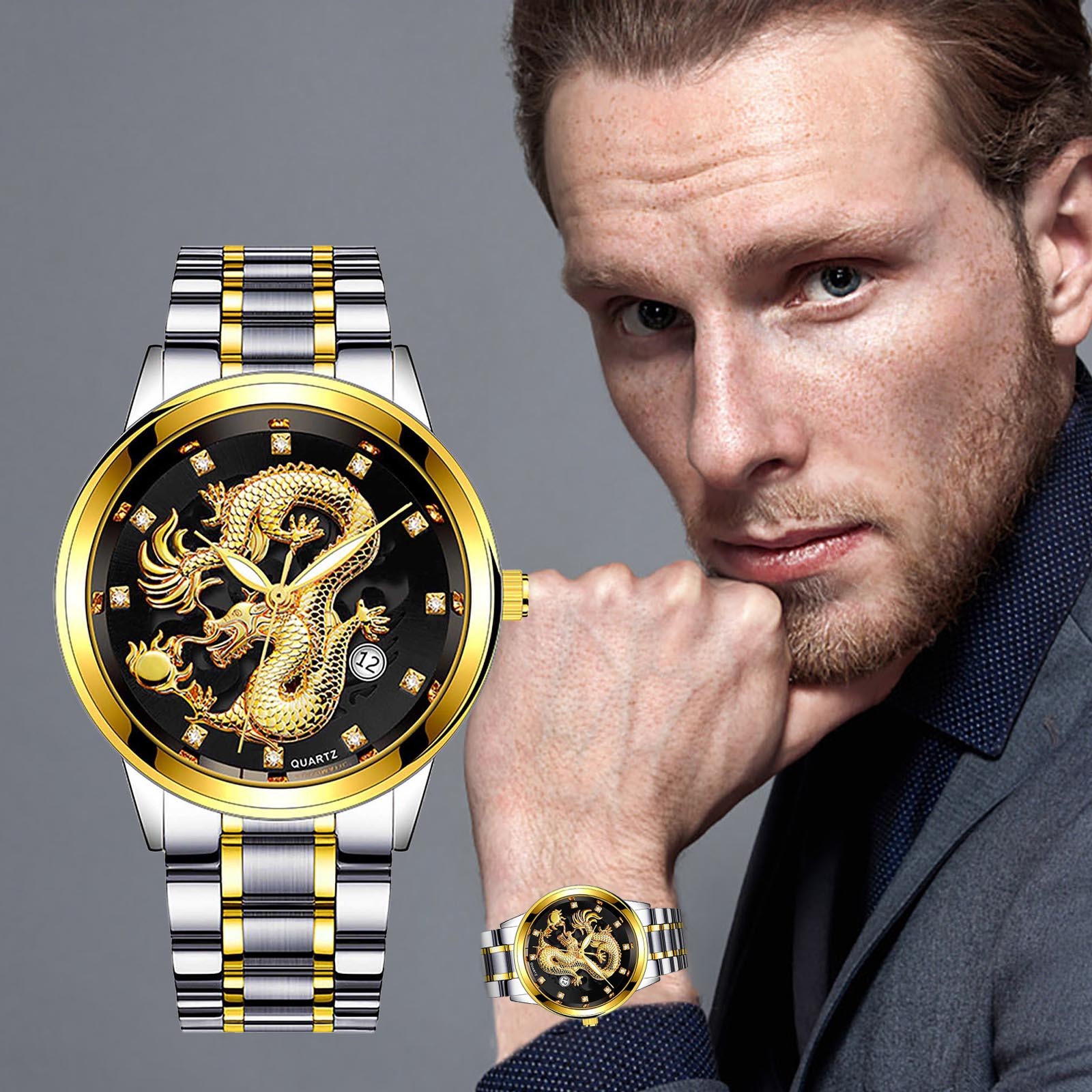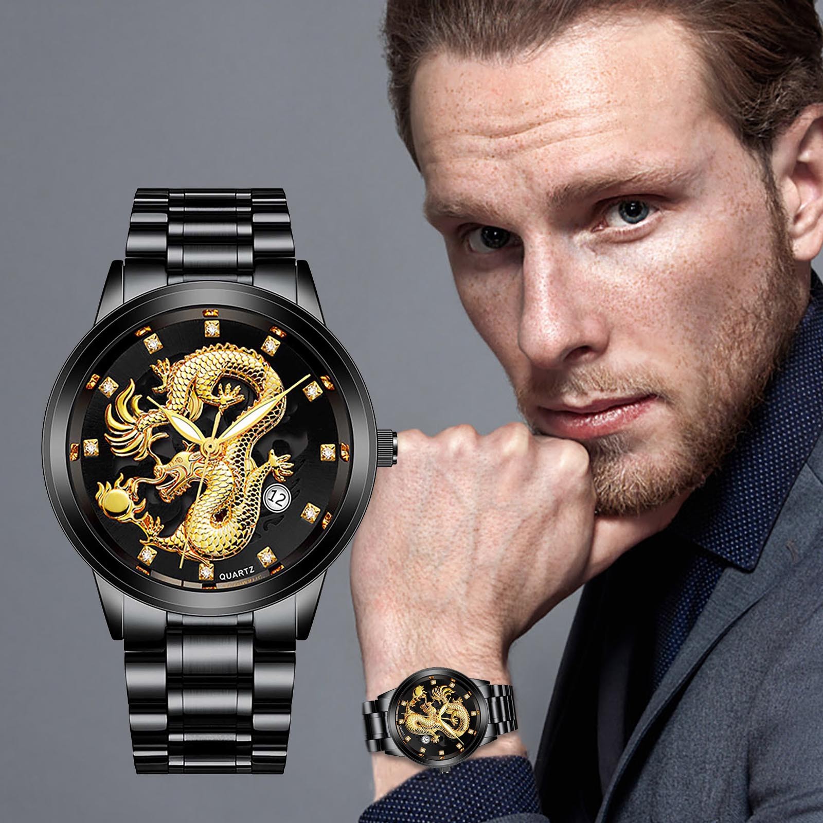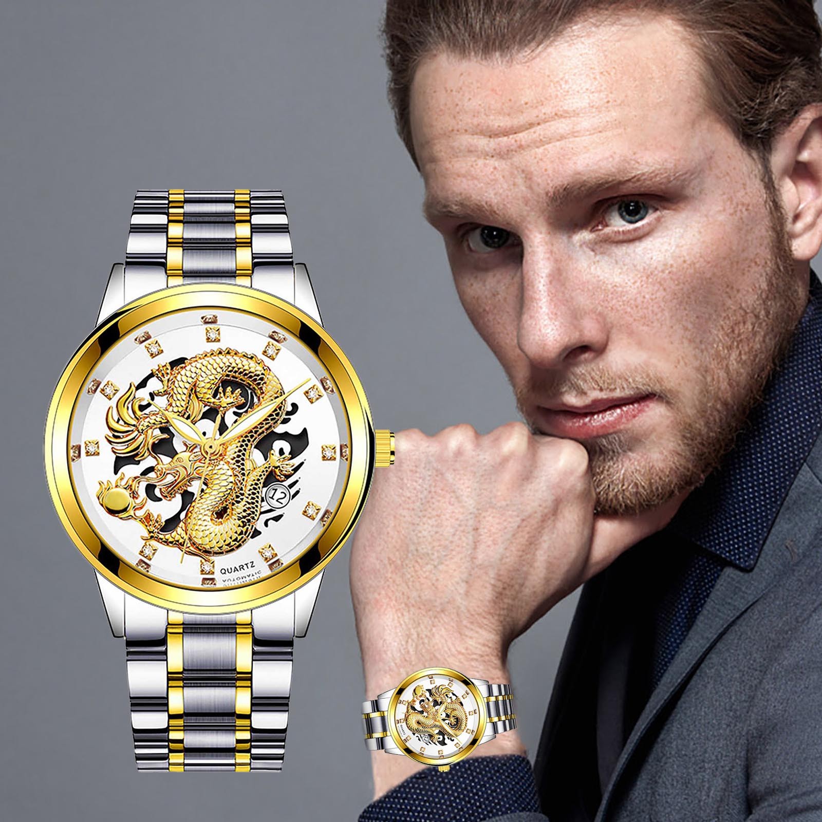 Мужские часы со стальным ремешком, Золотая фигура дракона, модные властные мужские часы