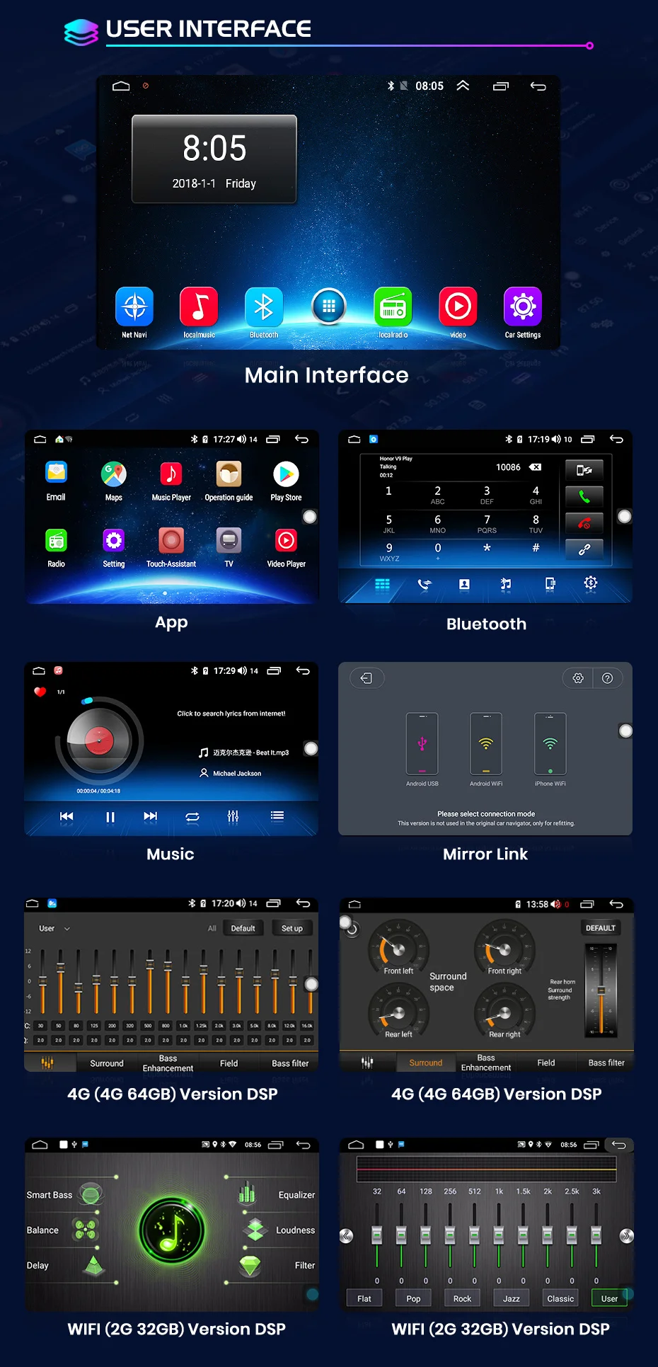 Благодаря сети 4G и встроенному Wi-Fi вы можете наслаждаться серфингом в Интернете независимо от того, где вы находитесь, что делает его возможным для онлайн-навигации/музыки/кино и т. Д.