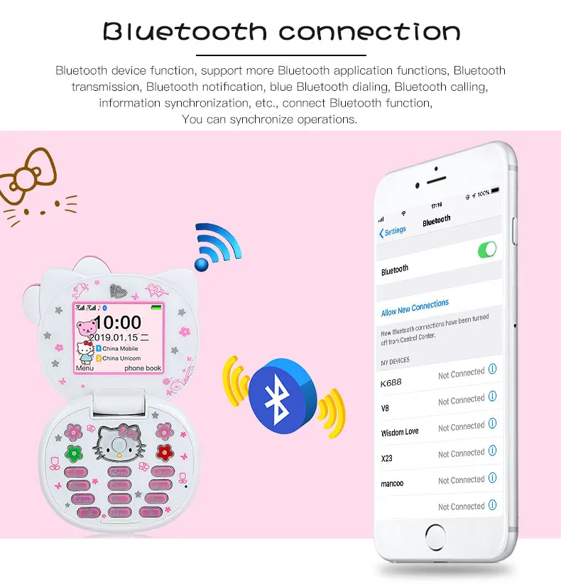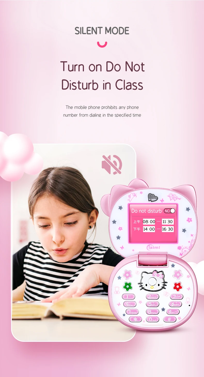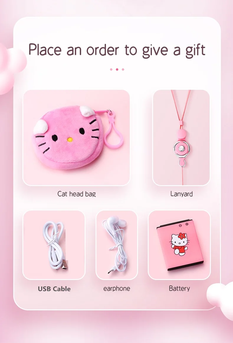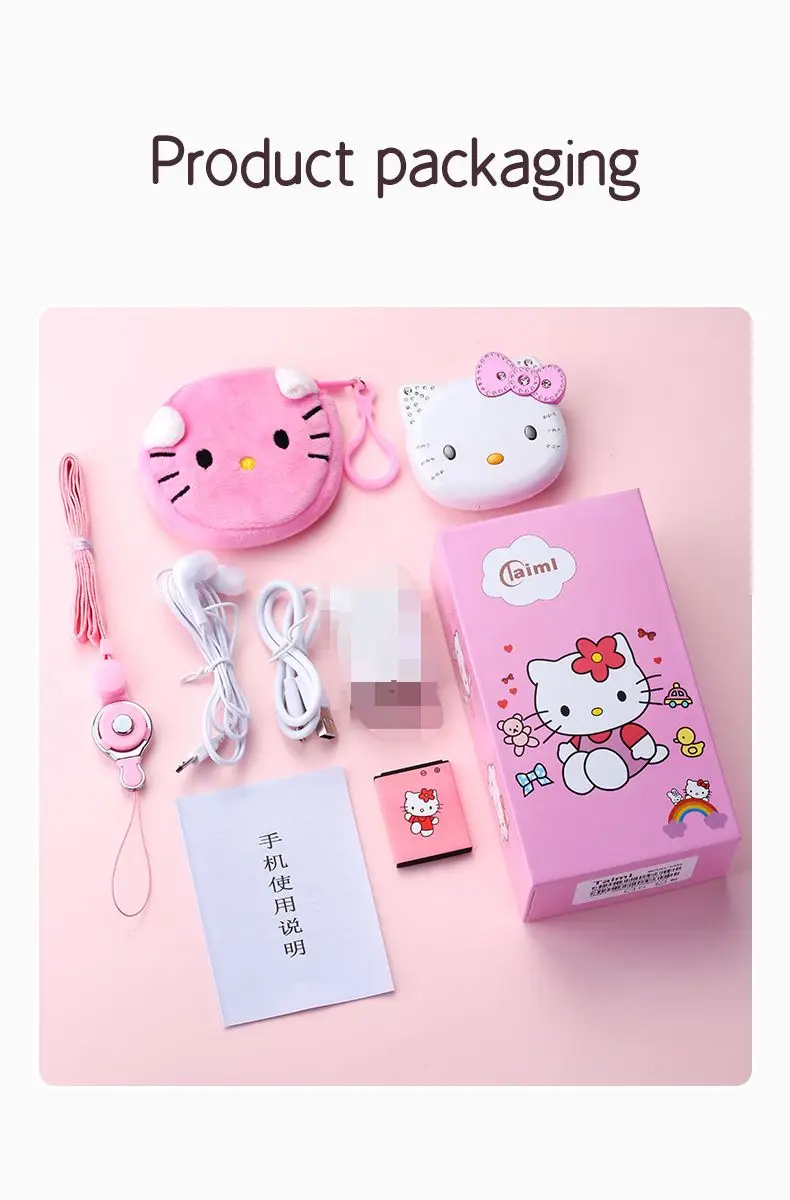 Милый мини-мобильный телефон для девочек, четырехдиапазонный флип-чехол с мультипликационным принтом, разблокированный, для детей с двумя sim-картами, мобильный телефон с подарочной кошкой